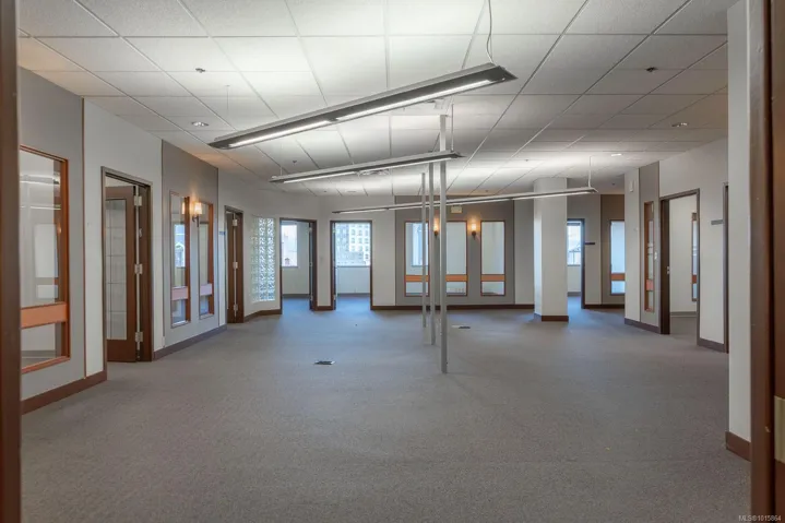 Prime Downtown Opportunity in Nanaimo, extensively upgraded property featuring approximately 50,000 sq. ft. of thoughtfully designed and turnkey office space. Located in the heart of downtown Nanaimo, the property offers exceptional potential for businesses seeking a central and professional location. The property comprises seven distinct units, each tailored for substantial office use, with configurations ranging from 3 to 18 offices per unit. Each unit boasts a variety of functional amenities such as staff rooms, kitchens, reception areas, waiting rooms, washrooms and ample storage solutions. Building is equipped with an on-site workshop, and a cafeteria/restaurant. Spread across two floors with two convenient access points, the property is zoned DT 4 (Terminal Avenue), allowing for diverse uses such as offices, financial institutions, commercial or technical schools, convention centers, cultural facilities, and potential for a conversion to multi-family residential. Plus GST.