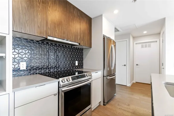 Welcome to “The 881” at Uptown! Masterful design & modern luxury are uniquely embodied in this new condo development. Unrivaled in location & amenities, close to shops, cafes, restaurants, fitness centers & more. With a walk score of 91, this development claims a desirable proximity to parks, walking trails, Uptown & Mayfair shopping centers. Reflecting a magical merging of inspiration & modern architecture, this luxury 2 bedrooms unit in an open & airy concept highlighting hardwood floors, S/S appliances, quartz counters, modern kitchens & VRF heat pump system w/high efficiency heating & cooling. Residents will enjoy the use of a large alfresco deck for relaxation & entertaining. As a “Built Green Gold” building w/sustainability in mind, this development includes rooftop garden plots, centralized gas hot water, high efficiency appliances, & more. The unit comes with a secure underground parking stall.