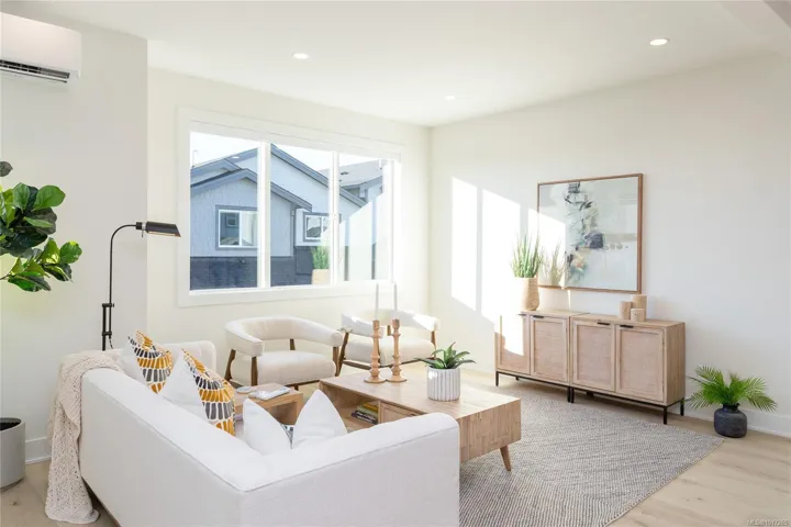 Ask about our limited $10,000 credit promotion. Welcome to Dolomite Ridge, the latest collection of spacious townhomes from award winning Verity Construction in the Westview development in the Bear Mountain area. This End-Unit home features 4 bedrooms and 3 baths, as well as separate Den OR Media room space. This step up style lot allows for an open concept living area that walks out onto a large patio and yard area with gas BBQ hookup. Great for hosting! The kitchen is complete with a stainless steel appliance package, quartz counters, and a peninsula with breakfast bar. Upstairs is three bedrooms including a primary with walk in closet and ensuite with tiled walk in shower and dual sinks. All homes have efficient heating and cooling via a dual head ductless heat pump system paired with baseboards. Built Green Certified. Garage AND covered driveway area. Laminate flooring in the main area. Landscaping with irrigation. New home warranty.