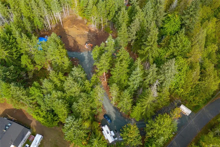 Country living at its best! Enjoy peace and privacy on this nearly 2-acre parcel located just 8 minutes from Chemainus and 15 minutes from Duncan. Set in a quiet cul-de-sac, the lot offers a natural bench toward the back—an ideal building site with a drilled well already in place. A wide driveway leads to an RV parking area with power and a finished outbuilding serving as a laundry room. Another finished structure houses the well pump and filtration system, both matching in siding and trim. 200-amp hydro service is installed with underground lines to the well shack. The home site has been excavated and is ready for concrete forms, with the septic field area graded and prepped. Engineered plans for a stunning 3,740 sq.ft. residence are included—ready for your dream build in a peaceful rural setting just minutes from town conveniences!