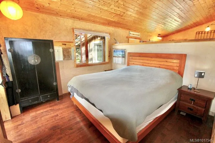 This 15.30-acre property offers panoramic ocean views, privacy, trails, ponds, and a mix of cleared and treed land. Located in Haida Gwaii, formerly called Queen Charlotte Island. Located in Tlell, BC. The perimeter is fully enclosed with electric fencing for animal proofing, and a separate fenced yard around the home provides safety for kids and pets. There is an orchard of cherry and apple trees, berries and garden area. The 1,200 sq. ft. home features an open-concept gourmet kitchen, dining, and living area, plus 1 bedroom and 1 bath. Heated floors warm the kitchen, bath, and walk-in closet. Additional comforts include engineered hardwood, a wood stove, a heat pump with AC, and a 3-year-old metal roof. Well water is purified with reverse osmosis and iron filtration, and a large enclosed deck extends the living space. A small cabin provides guest accommodations