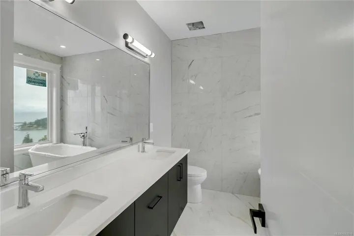Direct water views & just minutes from Neck Point Park & Pipers Lagoon. Custom-built, level-entry home w/ walk-out basement, approx 3000 sq. ft. Enjoy breathtaking panoramic views of Winchelsea Islands, Georgia Strait, Coastal Mountains from nearly every rm & from 5 sun-drenched decks. Inside, grand foyer opens to great rm & formal dining, highlighted by coffered ceilings, designer lighting & contemporary finishes. Sleek modern kitchen features custom wood cabinetry, premium appliance package, high-end fixtures, bright nook overlooking ocean. 5 spacious bdrms + den & 6 bathrms, + private guest suite/legal one-bedroom suite (approx. 600 sq.ft.) w/ separate entry & laundry, ideal for extended family or income. Additional highlights include media room w/ bar, engineered wood, tile flooring, fireplace, forced-air furnace, heat pump, 2/5/10 home warranty (All info, data & measurements should be verified if important. Plus gst.)