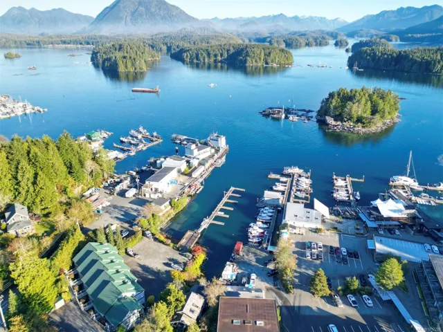 Mixed use waterfront commercial property in downtown Tofino. This property has multiple income streams with the upland property’s 1300 sqft commercial building leased to a well established seafood business plus a marina with 22 slips and excellent occupancy. Dock & pilings were redone in 2021 and 9 slips were added. Included in the sale is a 2 bedroom, 1 bath float house w/concrete float, currently used as an office. 13 years left on foreshore lease. Property is zoned C2 – General Commercial – which allows for retail, restaurants, art galleries/studios, personal service establishments and residential above ground floor. Right of First Refusal in place.