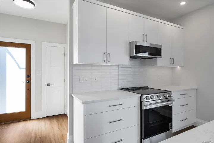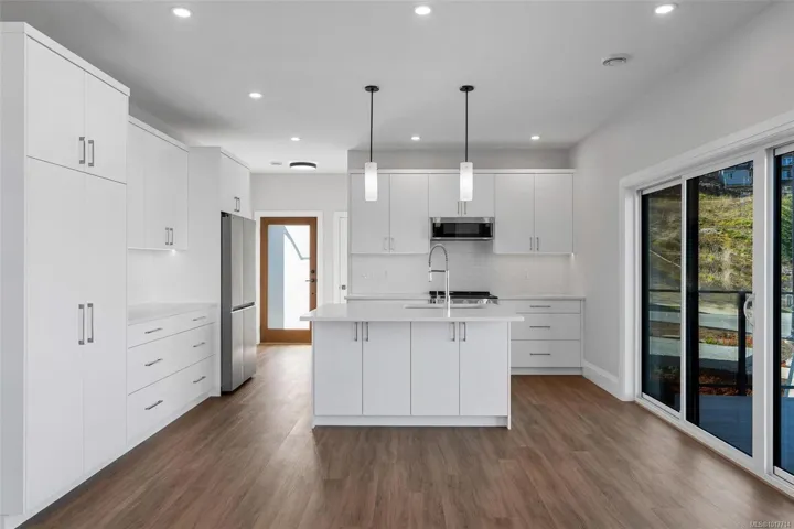 Premier single-level residence offering refined, high-quality living with stunning mountain and lake views. This bright, open-concept home features thoughtful design with no wasted space, a private deck, and exceptional privacy. Built with quality craftsmanship and attention to detail, ideal for downsizers or professionals seeking comfort, efficiency, and low-maintenance living. Includes one secure garage parking space plus ample street parking. Located in a quiet, highly desirable neighbourhood close to hiking trails, nature, and everyday amenities. Move-in ready.