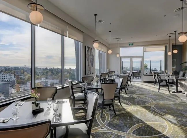 Immediate Possession is possible! Resort-style, luxurious 55+ living with ocean & city views. This near-new unit offers exceptional value. Enjoy a spacious 2-bed plus large den, 2-bath suite with a private balcony. The kitchen has a panelled Blomberg fridge/freezer/dishwasher, Fulgor wall oven, induction cooktop, quartz countertops, custom cabinetry. In-suite laundry, & heated bathroom floors. Conveniences include secured FOB access to the building & unit with pet-friendly policy. Club fee covers concierge services, daily continental breakfast & high tea, basic TV cable/internet, 24-hour emergency response, transportation & community activities. The spectacular 16,000 sqft amenities floor includes rooftop deck with a fireplace & community BBQs, stunning views from floor-to-ceiling windows, full-service restaurant, tea room, lounges, fitness centre, art studio, & library. Amenities include an on-site hair salon, movie theatre and Royal Legion next door. One underground parking for rent.