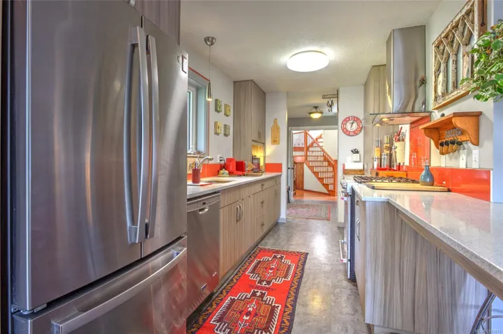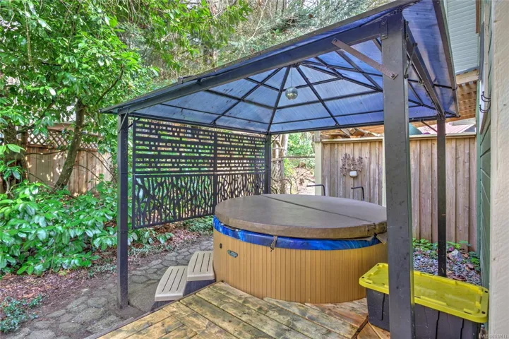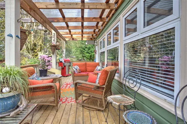 This magical home & .32 acre property are quietly tucked away on a no thru road, only steps from a beautiful beach & lake access. Just thru the gated entrance you’ll find stunning meandering gardens, fenced yard, carefully designed outdoor patio & covered spaces, a fairytale 4 bdrm home & a sense of complete tranquility. The functional layout of this family home offers 1 bdrm on the main, 2 bdrms up & a 4th bdrm/guest suite with separate access & private covered balcony, perfect for extended family, home business or Bed & Breakfast accommodations. Take in nature thru big picture windows while you cozy up to the living room woodstove. Enjoy a soak in the hot tub on a partially covered patio off the Family room. The bright modern kitchen & dining/living combination are perfect for entertaining. Garage/shop, plenty of parking, lake views, small quiet rural neighbourhood w/access to amenities & world famous recreation too! Come experience life on the lake without the lakefront price tag!