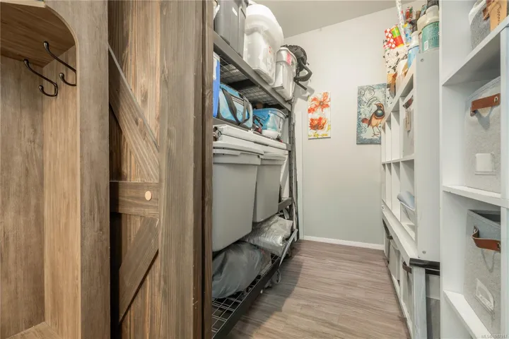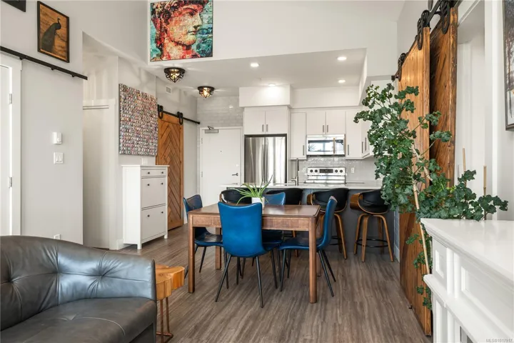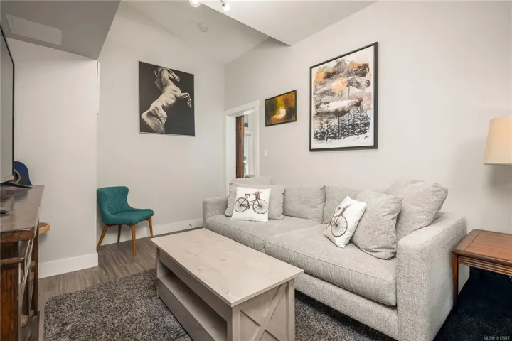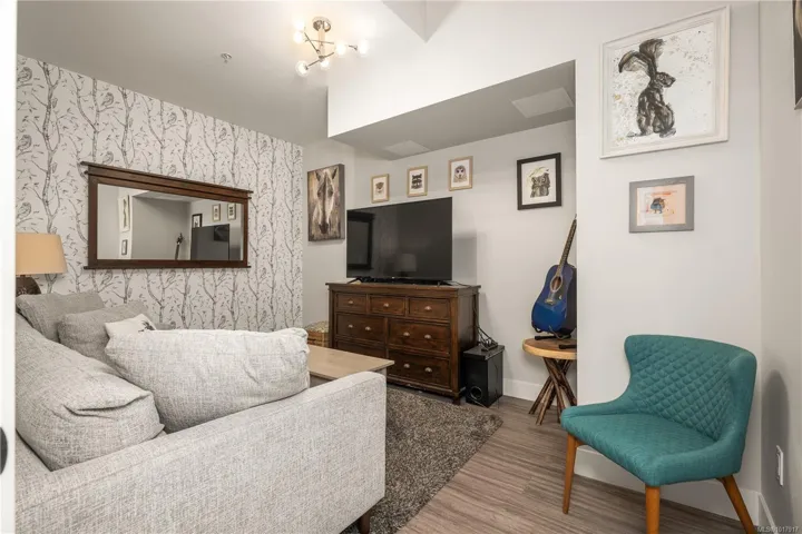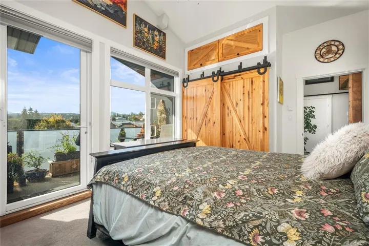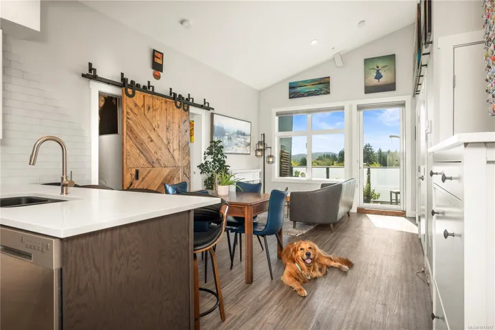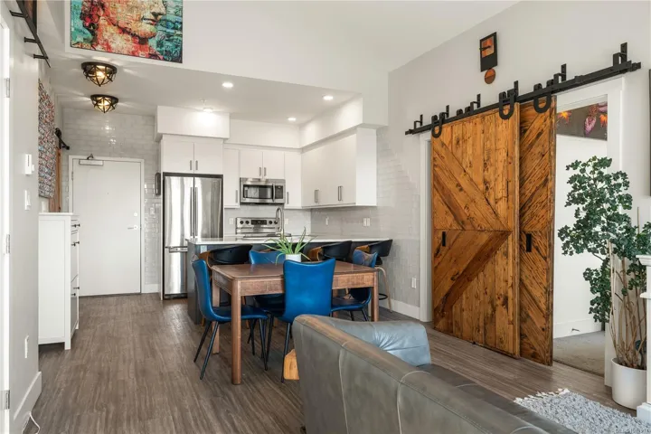 This stylish Top Floor Unit contains 2 bedrooms plus spacious bonus room offers exceptional flexibility for a home office, studio, gym or theatre room. Upgrades throughout include: Custom B.E. glass tiling, granite countertops, black kitchen sink, added cabinetry and storage, custom lighting in every fixture. Unique barn doors with handcrafted hardware, reinforced walls, and custom built closets showcase attention to detail. Large south facing balcony is the longest in the building, perfect for year round gathering. Features include blackout blinds, upgraded bath with custom woodwork & shower doors, built in storage, “Cloffice” & more. Underground parking, visitor parking, bike storage and easy access to VIU, NAC, NDSS, schools, shops & services right in your complex. Truly move in ready one of a kind home. Dogs & Cats welcome, 2 up to 40LBS Each!!! See Special Features List for more!