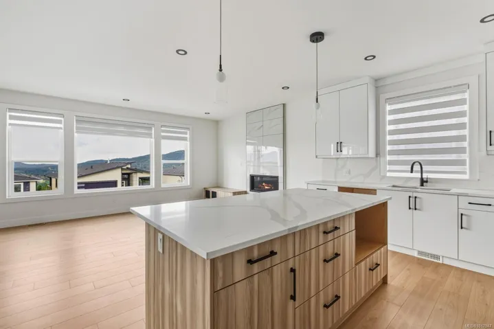 Welcome to your brand-new home in beautiful Maple Bay, where mountain views & cotton candy sunsets set the tone for relaxed, elevated living. Thoughtfully designed with over 2,775sq.ft, this 5 bed + den, 4 bath home offers the perfect blend of comfort, style & flexibility for growing families or multigenerational living. Upstairs, enjoy a bright & open layout with a cozy gas fireplace, a modern kitchen with quartz counters & a large covered deck ideal for entertaining or unwinding year-round. The primary bedroom includes ample closet space & stunning ensuite. While 2 secondary beds & a laundry room keeps this floor plan efficient for day to day living. On the ground floor you will find a handy office, 2pc bath plus two more guest beds, 4pc bath & living area with kitchenette rough ins. Easy potential for a large 1 or 2 bed in-law suite. Landscaping with irrigation, fencing & window coverings included! Located close to beaches, marinas, schools & hiking trails.