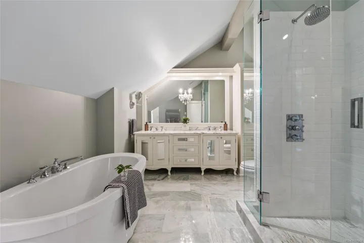 Prepare to be impressed by this exquisitely renovated 5-bedroom, 4-bath executive residence on a sprawling 17,460-square-foot lot just steps from Mt. Doug Park. The chef’s kitchen is a true showpiece, featuring high-end Dacor appliances, granite countertops, fine cabinetry, and an oversized island perfect for family and friends to gather around. French doors open to a vast, sun-drenched deck overlooking a private backyard surrounded by mature trees and lush gardens including a fantastic outdoor kitchen. The expansive primary suite captures stunning views of Mt. Doug and offers a spa-inspired ensuite with dual sinks, a freestanding tub, and a walk-in shower. Thoughtful sanctuaries throughout the home and yard create a sense of warmth and character, while the flexible lower level offers ample space for recreation, work, or guests. Walk to nearby beaches and enjoy the serenity of this exceptional property — a perfect blend of sophistication, comfort, and natural beauty.