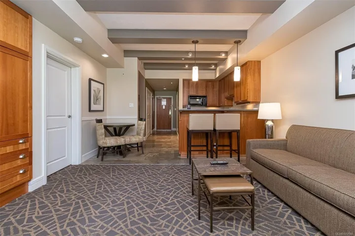 Experience an exceptional quarter-share opportunity at the renowned Fairways Hotel on Bear Mountain. Set at the foot of Mt. Finlayson, this main-floor 1,550 sqft suite features a 1 bdrm/2 bath with full kitchen & fireplace, plus an adjoining 1 bdrm/1 bath lock-off with kitchenette. Perfectly positioned along the 1st fairway of one of two Jack Nicklaus–designed golf courses, it offers luxury and convenience in equal measure. Enjoy nearby boutiques, spa services, dining, & more. Sports lovers will appreciate the covered clay tennis courts, mountain biking trails, and the Bear Mtn Activity Centre with gym & outdoor pool. Only a 25-min drive to downtown Victoria. When not in use, the suite is professionally managed and rented by hotel staff, generating income for the owner. Don’t miss this rare chance to own a piece of Bear Mountain’s vibrant yet tranquil lifestyle.
