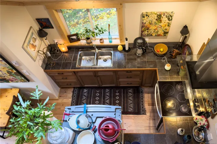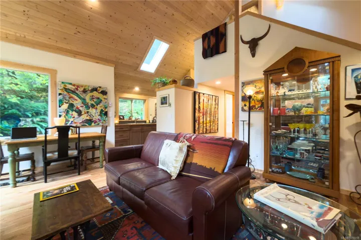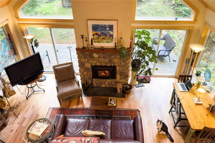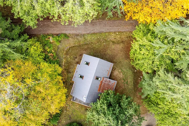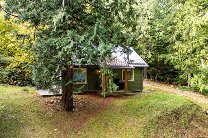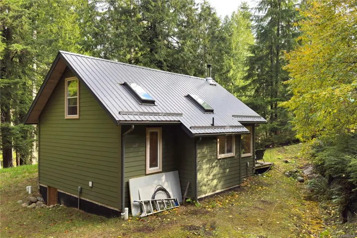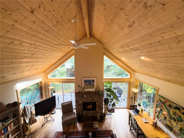 This beautifully crafted 2022 custom home offers a modern design that blends comfort with the natural surroundings. Situated on a forested hillside, this half-interest in a 1-acre lot enjoys privacy, sunlight, and a strong connection to nature. The 815 sq ft, 2-bedroom/1-bath home features an open-concept layout, large picture windows, a stunning stone fireplace, and hardwood floors throughout. The main bedroom is conveniently located on the main floor, while the second bedroom or office sits upstairs, offering flexibility for guests or remote work. Step outside to a large, sun-filled south-facing deck. Mature hazelnut trees and a cleared garden area on the hillside invite outdoor living and creativity. The co-owners hold a Tenancy-in-Common agreement and a recent survey that clearly defines each owner’s private 1/2-acre parcel. Still under the 10-year home warranty. Now offered at a newly adjusted price to reflect the water and septic systems.