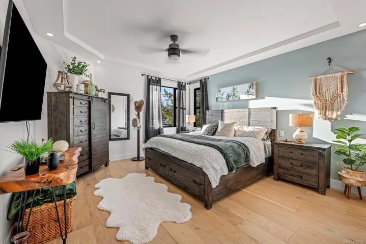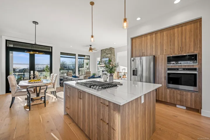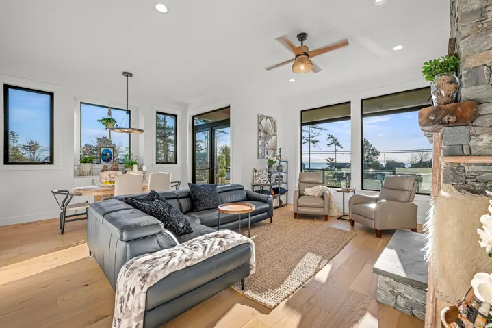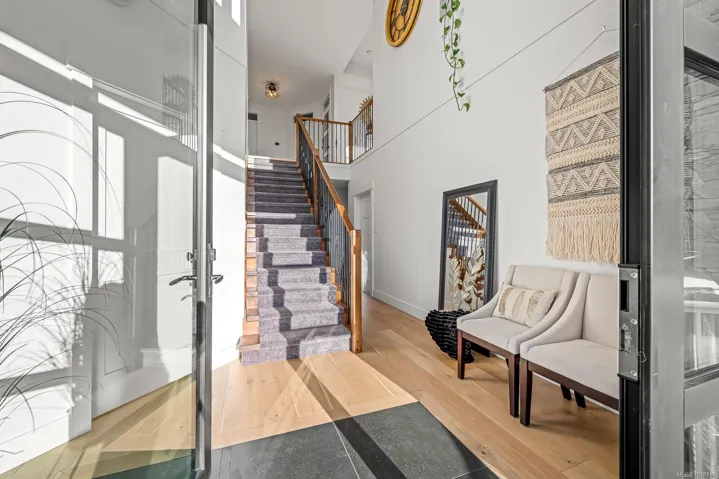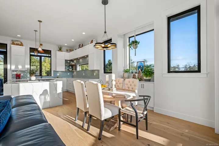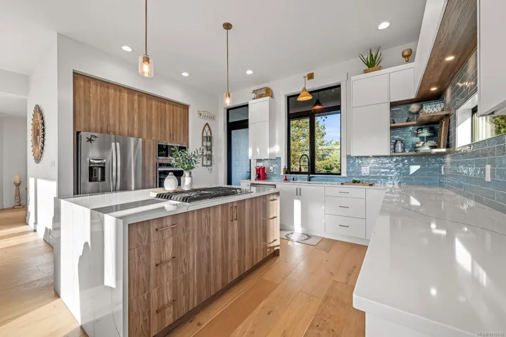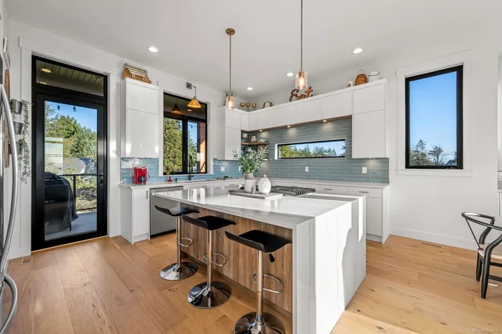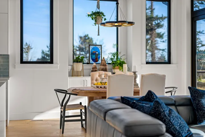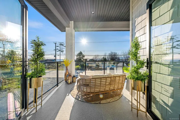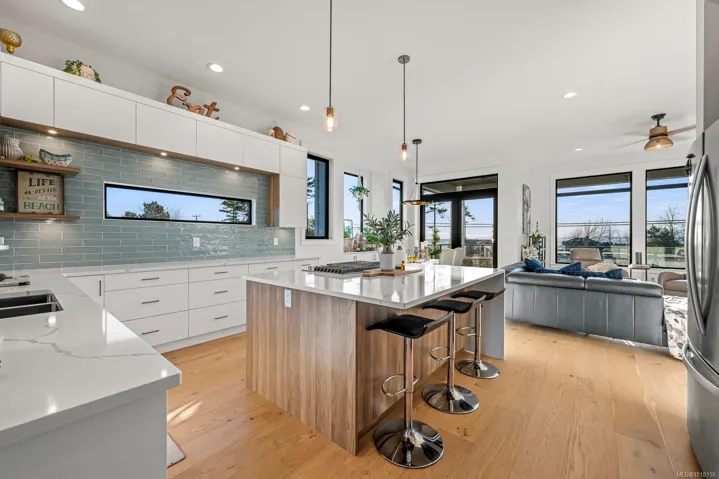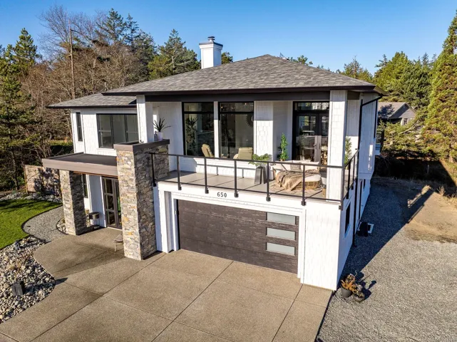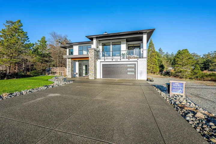 Modern coastal luxury with breathtaking ocean views! Built in 2023, this custom 2,959 sq ft home by Point Holmes blends elegance, comfort, and energy efficiency. Enjoy south-facing ocean views from both levels and a grand entry with soaring 18-ft ceilings. The open-concept main floor features a gourmet kitchen with gas cooktop, large island, and generous cabinetry and pantry, flowing into bright dining and living areas with a natural stone wood fireplace, picture window, and French doors to the spacious front deck. The primary suite offers a dressing room and spa-inspired ensuite with tiled shower, soaker tub, and dual sinks. A finished in-law suite provides excellent multi-generational living or mortgage-helper potential, while the large office could easily serve as a fourth bedroom. Walk to the beach, boat launch, trails, bird sanctuary, schools, and airport.