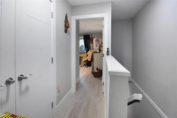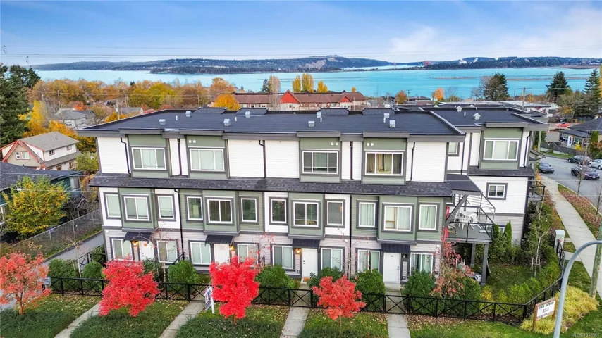 Welcome to an attractive townhome located in one of Nanaimo’s rapidly developing areas. The unique floor plan offers a ground-level entry with a single-car garage and a versatile live/work space featuring its own entrance and bathroom — perfect for a home office, guest suite, or additional family room. All on the lower floor. Upstairs to the middle floor, enjoy a bright, open-concept living area with abundant natural light and a spacious kitchen boasting custom cabinetry and elegant quartz countertops. There is a balcony off of the kitchen with a tiny ocean view. The top floor offers two large bedrooms, each with its own beautifully finished ensuite for ultimate comfort and privacy and each with a walk-in closet. The laundry is also on this floor. This stylish, flexible home truly offers the best of modern living. All measurements are approximate and should be verified if important. Tenant pays 2800/m and would like to stay. Options to keep the live/work space for your own use.