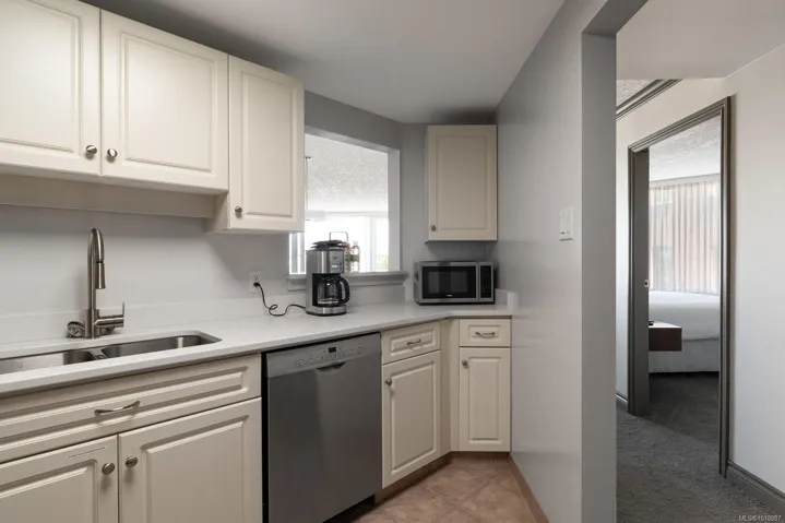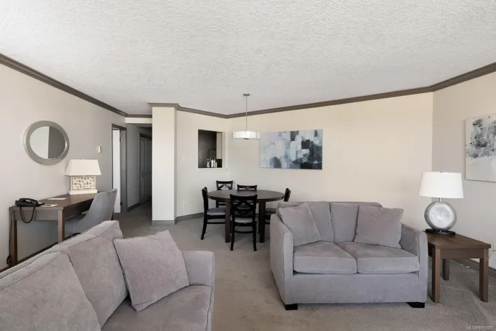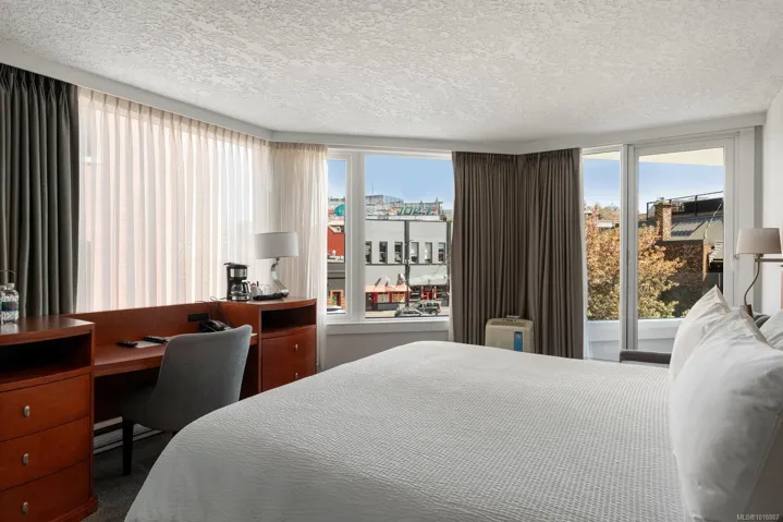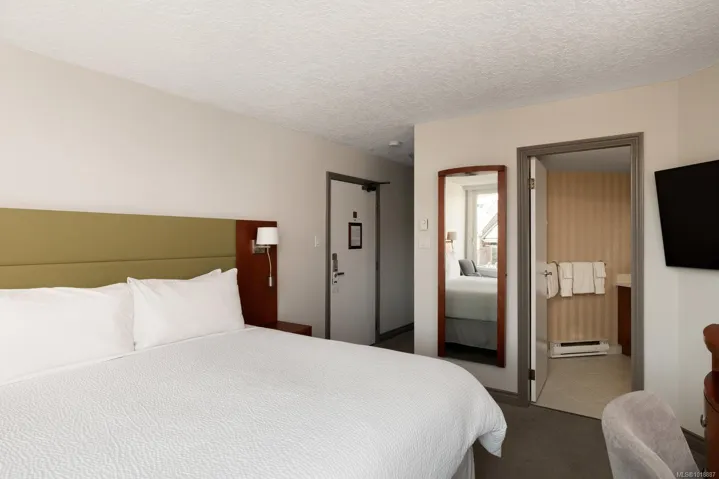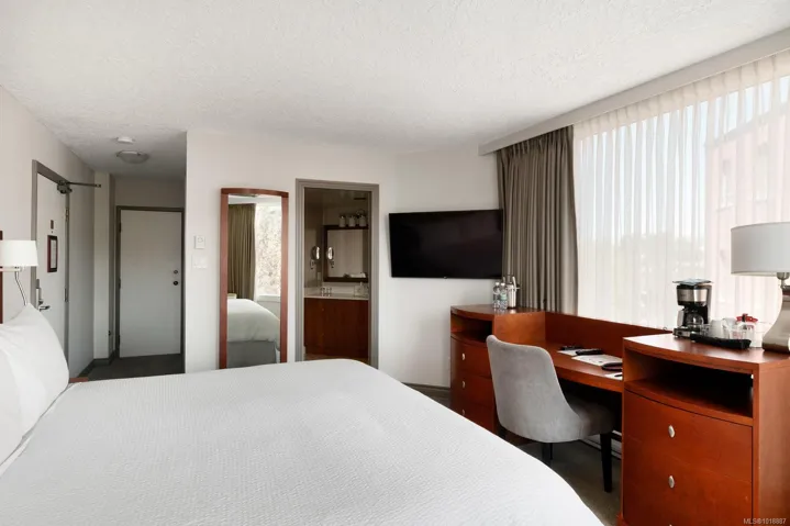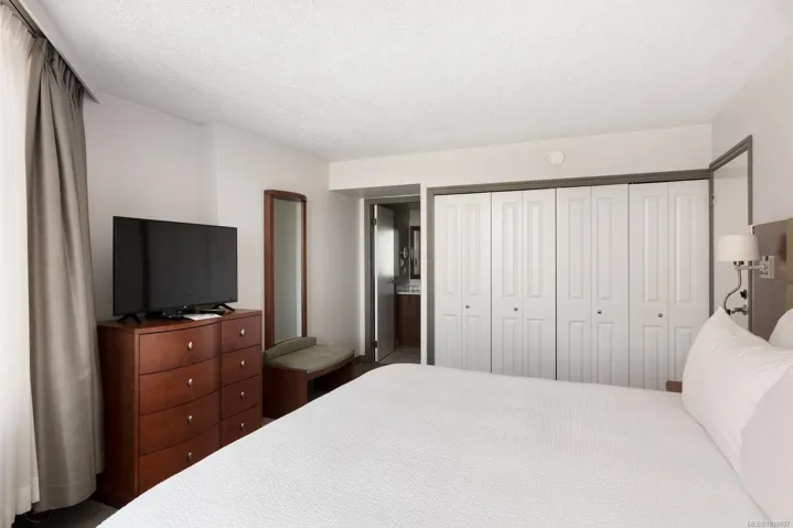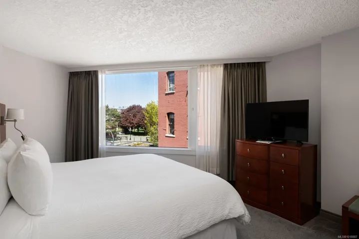 VICTORIA REGENT – Ideally situated on Victoria’s Inner Harbour, this 2-bed 2-bath suite offers spectacular water views, including vistas of the vibrant Songhees developments. Well-maintained & thoughtfully updated featuring floor-to-ceiling windows, newer flooring, fresh paint, & two private balconies to soak in the surroundings. The modern kitchen includes new stainless steel appliances, and the spacious living/dining area is ideal for entertaining. Both bedrooms offer ensuite baths, ensuring privacy & comfort. This solid steel-and-concrete building has recent updates including a new roof, windows and doors. Enjoy amenities like 24-hour concierge, in-house housekeeping, & secure underground parking. Currently in the hotel rental pool, the suite can stay in the program with optional owner use or be withdrawn for full-time living. Steps from top dining, shops, and the iconic Inner Harbour — embrace carefree waterfront living in the heart of Downtown Victoria.