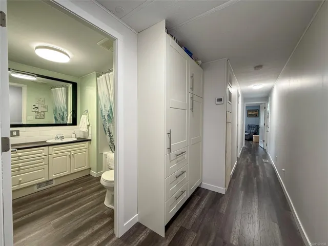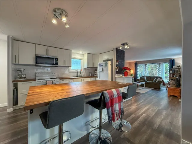 Welcome to this little gem in Woodburn mobile park. This home has been extensively renovated in the past five years including new windows, roof, siding, kitchen, bathrooms, flooring, AND has a new heat pump. This one-level mobile features two bedrooms, two bathrooms and a bright, inviting feel. The primary bedroom has a walk-in closet and two piece ensuite. You will love being surrounded by the forest and walking trails, and being just minutes to the Campbell River and McIvor lake. Woodburn park has great low pad fees and is family-oriented. This home is move-in ready for new owners- come and see it today!