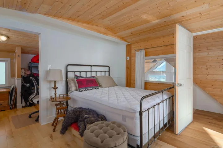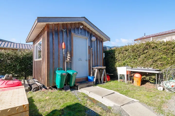 Discover your perfect coastal sanctuary in Salmon Beach. This stunning home boasts soaring vaulted ceilings and wall of windows that capture the essence of seaside living. The bright main level features a welcoming living room and kitchen with butcher block countertops, plus a 3-piece bath. Upstairs, the primary bed offers a tranquil retreat with an office space and a private balcony showcasing breathtaking ocean views. Experience the beauty of your surroundings with bald eagles soaring above and sea lions as your daily companions. Ideal for fishing, surfing, whale watching, and enjoying the outdoors, this home caters to animal lovers and adventure seekers alike. Built to hurricane standards this home also includes a 4-foot crawl space, gated property for privacy, bunkie for extra accommodation, RV hookups, a 1500-gallon cement water cistern & 1500-gallon septic holding tank. Embrace the quintessential West Coast lifestyle in this exceptional Salmon Beach retreat. Measurements approx.
