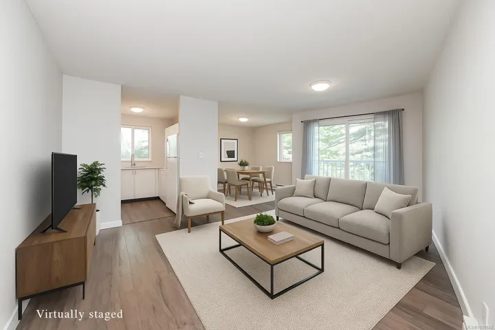 Excellent investment opportunity within walking distance of North Island Collage and all amenities! 860 sqft penthouse corner unit is conveniently located near the elevator. Beautiful private balcony with view of valley view through the trees brings nature to your living space. Preferred corner floor plan in the building. Rentals and two pets are allowed! No size restrictions on dogs, which is hard to find! This building in undergoing a huge renovation to the building envelope bringing piece of mind and gorgeous aesthetic appeal, which should remarkably increase market value. Wonderful place for students, retirees, or young families!