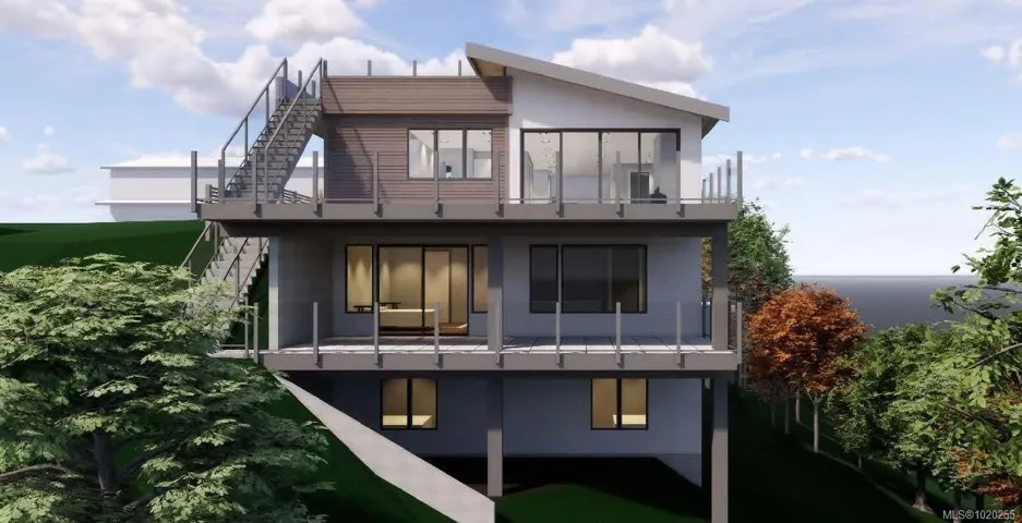 Presenting Lot B – Perched high on Cordova Bay Ridge, at the North end of Wesley Road, this exceptional lot offers spectacular ocean views and an unparalleled opportunity to build your dream home. With nearly 12,000 sq. ft., this premier property includes plans for an executive three-level residence with a rooftop deck, thoughtfully designed by Ryan Hoyt Designs to capture panoramic views across Haro Strait.