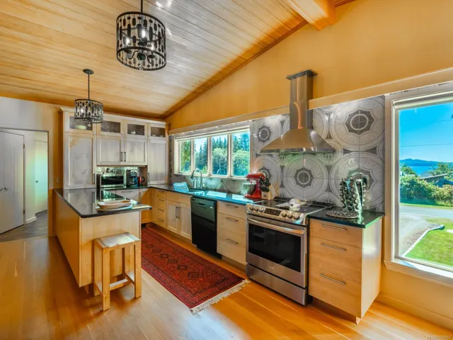 Designed for versatility, this 2,947 sq. ft. Craftsman/West Coast home is ideal for multi-generational living or income opportunities. The main floor has 3 generously sized bedrooms & 3 bathrooms, while a separate one-bedroom suite is perfect for guests or rental income. The open-plan living area is filled with abundant natural light, & an innate sense of serene comfort. Downstairs, a full bath and flexible space could transform into a second suite or business. Commandingly positioned above the quaint picturesque seaside village of Sointula on Malcolm Island, this home offers ocean & mountain vistas, captivating sunsets, all in a meticulously maintained park like setting. Sitting on 2.86 acres with fruit trees, & vibrant gardens, this property is a peaceful retreat with municipal water/sewer & potential for future subdivision (subject to approval). We invite you to explore the video tour & envision a life where architectural brilliance meets the serene landscapes of Malcolm Island.