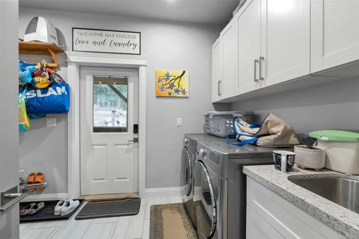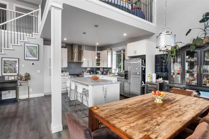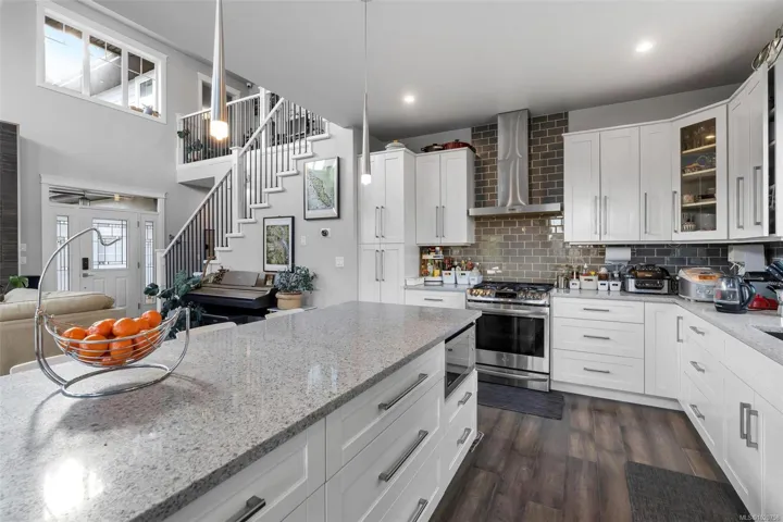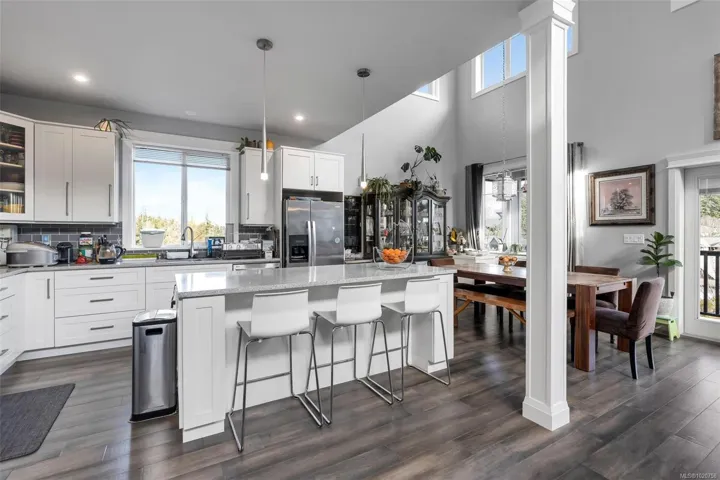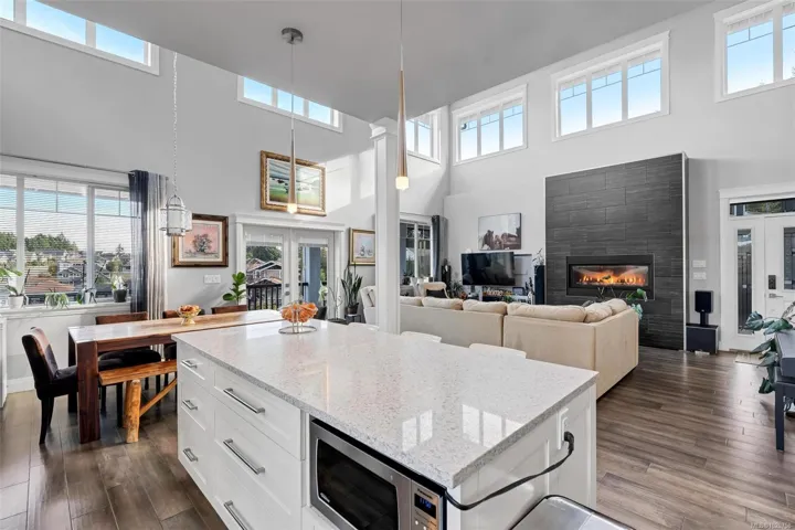 Welcome to this impressive 7-bed, 5-bath home in desirable Mill Springs! With nearly 3,800 sqft of living space, this property offers exceptional flexibility for large or multigenerational families. The stunning 18 ft open living room captures incredible sweeping views and is filled with natural light in summer, while the cozy fireplace provides warm comfort in winter, enhanced by efficient heat-pump climate control. There is the choice of two primary suites, both featuring a generous layout with a luxurious 5-piece ensuite. A spacious 3br suite with an exterior entrance is ideal for extended family or guests. Outside, enjoy a private patio, established gardens, sprinkler system, convenient RV parking, and direct access to miles of walking and biking trails that wind through the community. With quality construction and thoughtful design throughout, this home offers lasting comfort. 30 minutes from Victoria, it blends an easy commute with the serene, sought-after lifestyle of Mill Bay.
