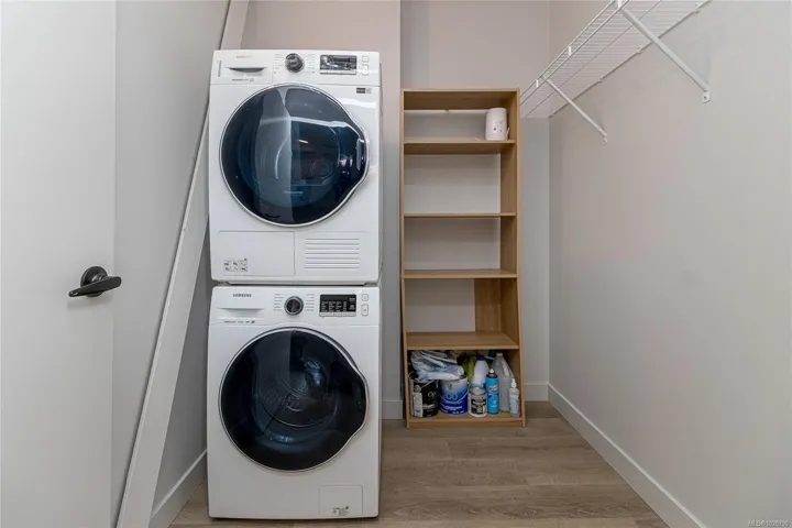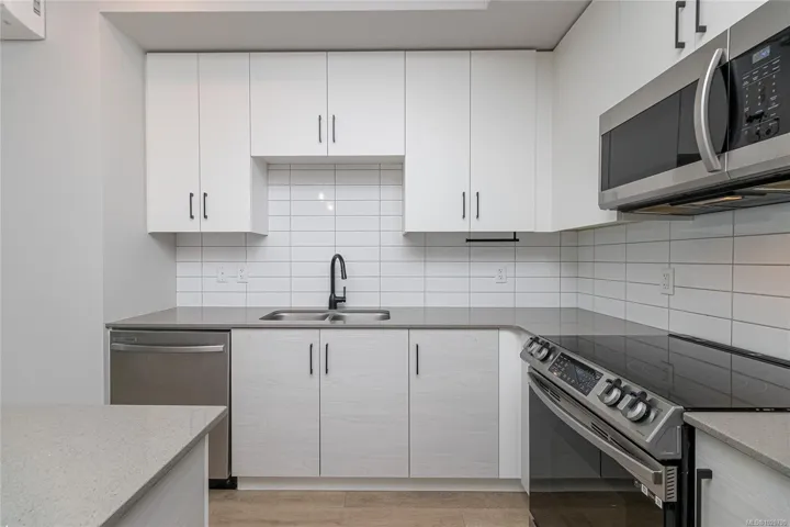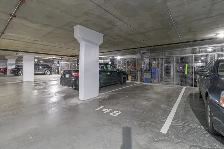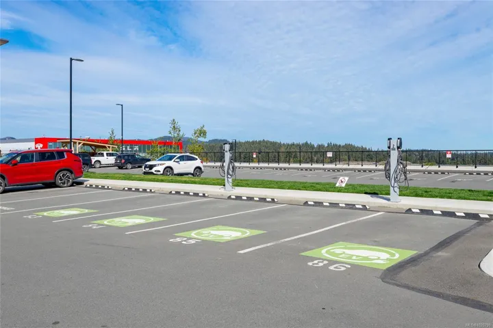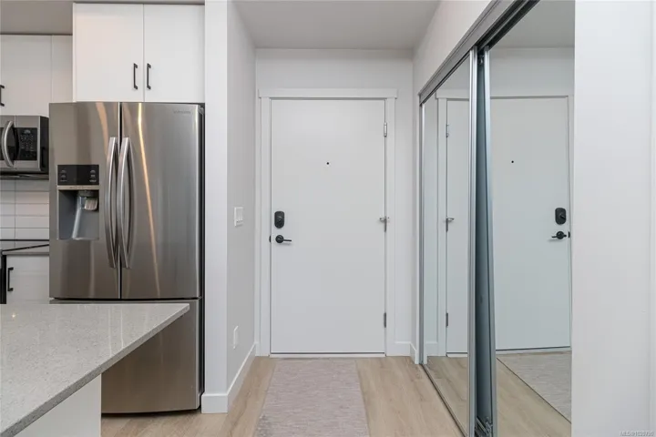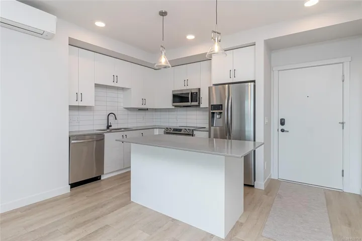 The kitchen features energy-efficient appliances, quartz countertops, and sleek contemporary finishes, while LED lighting throughout the unit boosts both ambience and efficiency. Enjoy the convenience of 2 parking stalls, ample in-suite and secure bike storage, plus on-site EV charging.