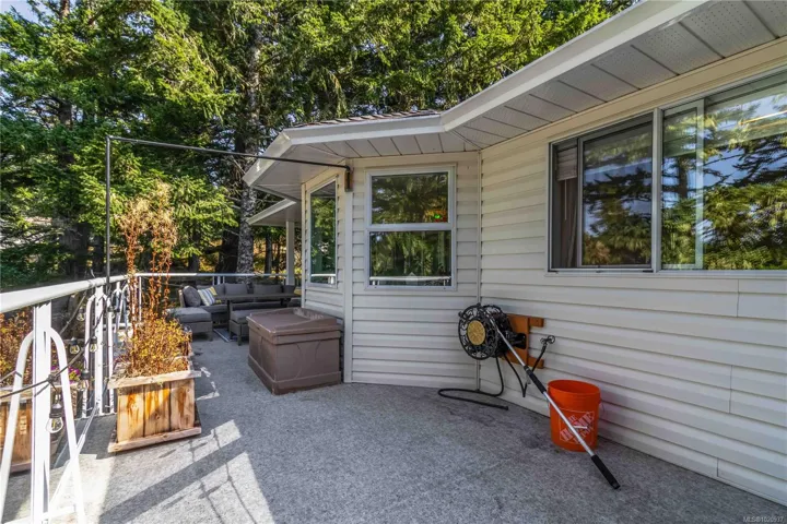 A true West Coast retreat! Set atop Mount Matheson, this private 1.26-acre property offers nearly 3,000 sq.ft. of well-designed living with main-level convenience and a versatile walk-out lower floor. The welcoming courtyard entry w/ gardens+fountain leads to bright, updated, open spaces filled with character. The living room is anchored by a wood stove and flows naturally to dining and a refreshed kitchen with quartz counters and breakfast nook, opening to a generous deck with sweeping views of nature. The main-level primary suite includes walk-in closet and ensuite, while a sunroom adds a peaceful flex space. Downstairs, a spacious family/media room with gas fireplace and bar creates the perfect gathering zone, with direct access to the pool and hot tub oasis- so perfect for entertaining! Ideal for families or guests with 5 bedrooms + office/den, plus ample parking and a double garage. This is East Sooke living at its best—quiet, scenic, and endlessly inviting.