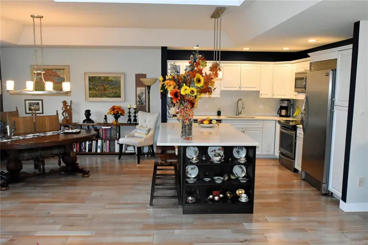convenience. Enjoy a short stroll to scenic Columbia Beach for oceanside adventures, or take a quick drive to Parksville or Qualicum Beach for shopping, restaurants, golf, parks and more. The home features an open-concept living and dining area with a modern fireplace, quartz countertop and backsplashes in the kitchen, stainless steel appliances, and a large island with eating bar. The spacious primary bedroom includes a 4-piece ensuite and walk-in closet. Additional highlights include engineered hardwood floors, heat-pump with A/C, a new hot water tank, RV parking, co-op garden plots, and a single garage. Enjoy peaceful living in this quiet, desirable location.