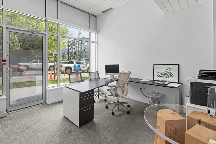 Located at the high traffic corner of Johnson and Cook Street, this office strata unit is a fully customized, 1,041 SQFT, luxury