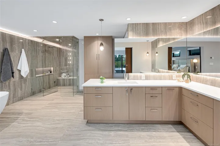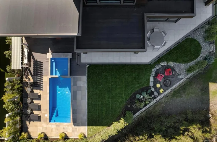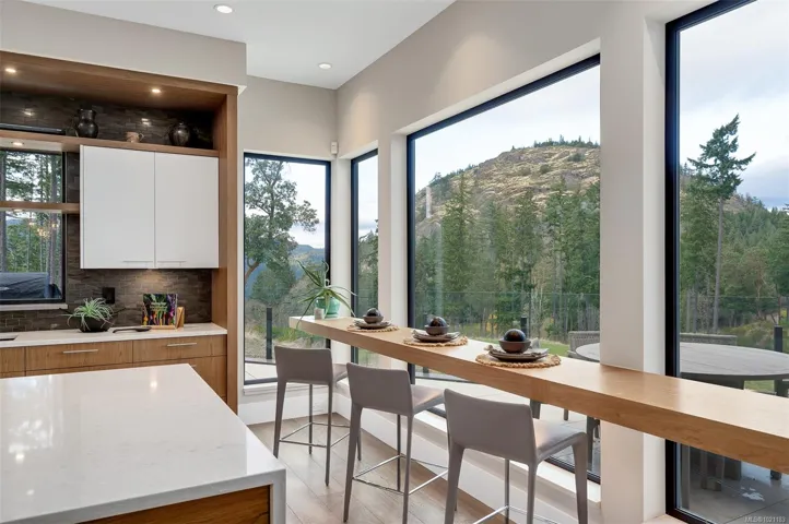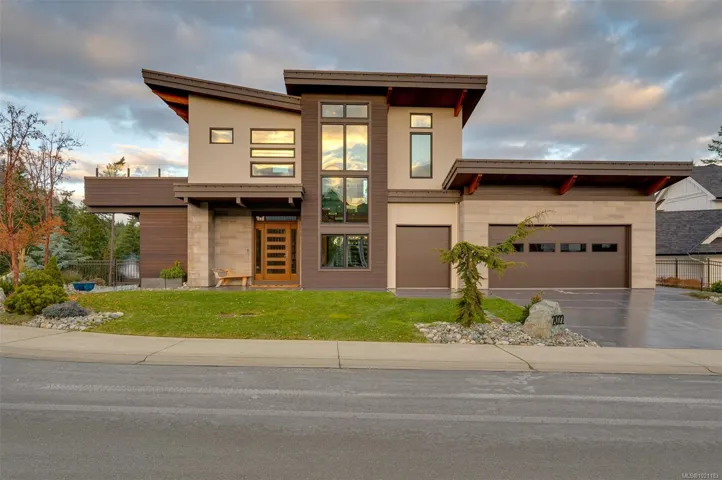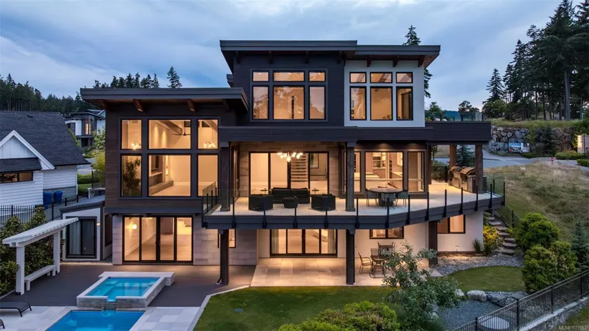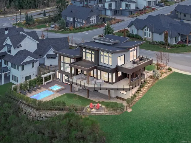 Experience luxury living in one of the most coveted executive homes on Bear Mountain. Nestled on a no-through street & overlooking the 3rd hole of the Golf Course, this west coast contemporary gem offers nearly 5,000sq ft of exquisite craftsmanship w/breathtaking views of Mt. Finlayson from every level. The main floor boasts a chef-inspired kitchen w/Sub-Zero & Miele appliances, walk-in pantry, and a breakfast bar. The open concept design flows into the dining area & the impressive living room, complete w/15′ vaulted ceilings. Upstairs, discover a dramatic office space, media/guest room, flexible living area & two sun-drenched rooftop patios. The lower level is a private retreat featuring 3 bedrooms, including a luxurious primary suite w/dressing room and a spa-like 5-piece ensuite. Over 2600 sq. ft. of patios and decks, heated in-ground pool & hot tub – the perfect home for entertaining. This residence embodies resort-style living at its finest!