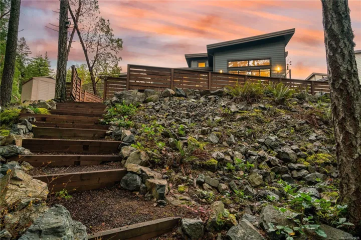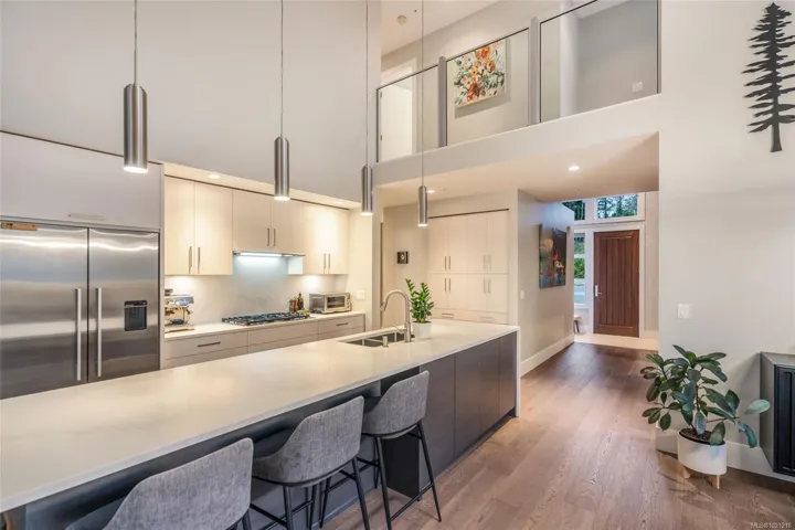 West Coast living at its finest in this beautifully crafted Contemporary home at The Ridge, set on a large fenced lot backing onto protected forest and parkland with direct access to endless walking trails. A bright, open layout features a spacious great room with large windows, engineered hardwood flooring, and double sliding doors to a generous deck. The gourmet kitchen impresses with Fisher & Paykel double wall ovens, gas cooktop, double dishwasher, quartz countertops, beverage fridge, large island and built in pantry. The primary bedroom feature French door deck access, a spa ensuite with soaker tub, walk-in rain shower, heated tile floors, and a custom millwork walk in closet. A den, powder room, laundry room, and well-designed mudroom connect to the double garage. The open staircase overlooks the main living area and leads to two additional bedrooms and a 5-piece bath with heated floor. Exceptional home in this warm connected community where the sounds of the city melt away.