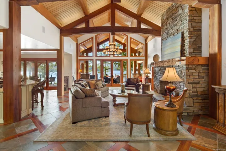 Goose Landing, rests on the ocean’s edge, positioned to ensure each room enjoys uncompromised ocean views. Open plan ideal for entertaining with vaulted ceilings & exquisite stone & wood work. Chef’s kitchen is bright & modern, punctuated with SS appliances & gleaming granite. Adjacent dining rm opens to great rm with striking stone encased dual sided FP shared with opposing family rm. Master features walk-in closet & lavish ensuite. 2 addtl bedrooms, 1 with ensuite complete the main residence. Surrounded by a wrap-around deck with covered sections for year-round enjoyment. Completely separate, 3 bed guest house spaced over 3 levels totaling 3,287sqft. Caretaker’s cottage, staff accom, green houses & addtl out buildings all constructed on favoured locations. Resort style living on this 120 acre parcel completely self sustaining, off the grid property. Surrounding waters known for world class fishing. Access via private 94 ft dock w/boathouse or private helipad.