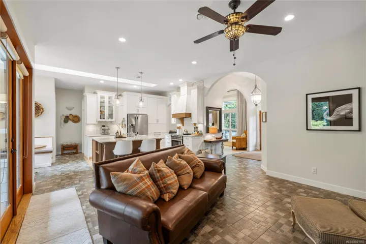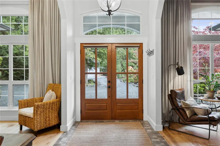 Imagine a private retreat where elegant design, timeless beauty, and effortless living blend two homes seamlessly on 1.1 acres of meticulously curated grounds. The completely transformed 2,052 sq ft rancher impresses with soaring ceilings, a flowing great room, a bespoke kitchen with banquette seating and grand French doors opening to an expansive covered patio. A formal dining room and elegant study add sophistication, while the private primary wing offers direct patio access and a spa-inspired ensuite. Three additional bedrooms are thoughtfully positioned for privacy. The lush grounds feature manicured gardens, raised beds and sweeping lawns, creating a serene retreat. A luxurious two-bedroom carriage home, perched above a finished workshop boasts its own driveway, private patio, and exquisite finishes—ideal for guests, multigenerational living, or an executive rental. Every detail has been meticulously crafted for those seeking beauty, comfort, and effortless coastal living.