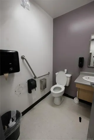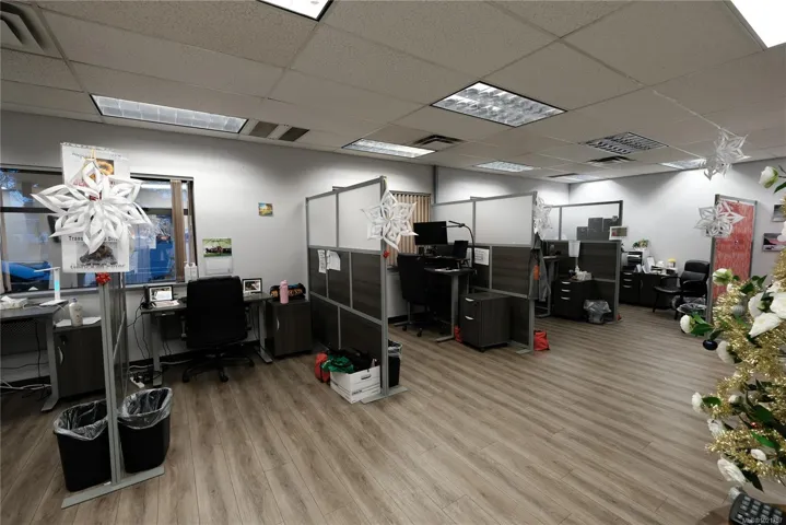 For lease: A total of 3,342 SF of commercial office space is available for lease. This area is spread over the right side of the single storey freestanding building. The space features reception area, large open area, 6+ enclosed offices, three washrooms, a staff kitchen, janitor closet and secure data room. The property offers a large parking lot shared with the adjacent Tenant (BC Government – Income and Disability Services office). Contact listing agent for further details.