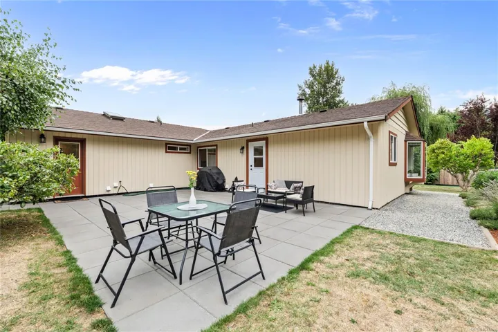 This beautifully updated, sun-filled rancher offers the perfect blend of comfort, style, and walkable convenience, all on an easy-care, level lot. With nearly 2,000 sq ft of one-level living, this spacious 4-bedroom, 2-bathroom home is ideal for families, retirees, or even B&B potential. Step inside to find airy, light-filled rooms, a pretty white kitchen, and a chic, efficient wood stove that adds warmth and charm. The dreamy XL primary suite features a private ensuite, large walk-in closet and plenty of room to relax. The spa-style main bathroom offers a soothing retreat, while clever built-in storage adds everyday ease. Out back, enjoy privacy and sunshine in the fully fenced yard (3 sides), complete with an expansive patio, which is perfect for entertaining or quiet outdoor living. Bonus features include two RV hookups, a woodshed and plenty of onsite parking. Move-in ready with nothing to do but unpack and enjoy your walk everywhere lifestyle!