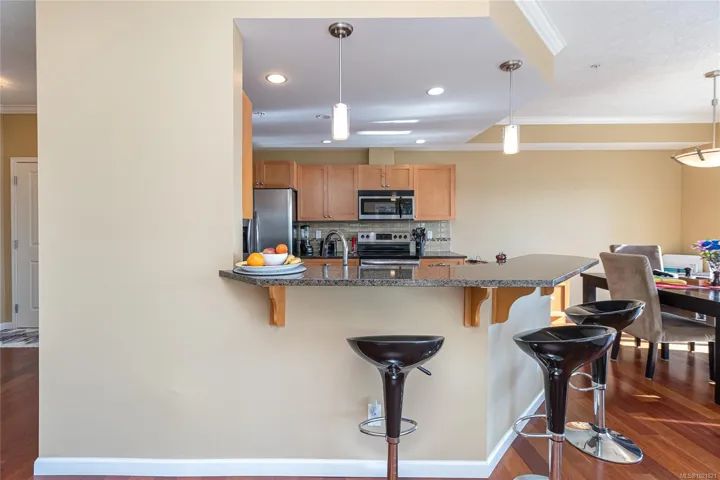 *OPEN HOUSE – Sun, Feb 1, 11-12pm* Luxury living in Admirals Landing best unit! SW corner penthouse 2 bed 2 bath OUTSTANDING panoramic water mountain forest city views and outlooks. This unit is on the market for the first time EVER since built in 2008. Modern upgrades throughout by award winning builders in a popular award-winning complex! Gourmet kitchen with granite counter tops, eating bar, pantry plus custom maple cabinets with SS appliances. The living room has a dynamic curved wall of windows overlooking wooded wonderland and ocean plus a feature corner fireplace. This is top floor corner unit with big sunny balcony secure underground parking and storage. Cherry wood wide plank flooring in all principal rooms. Large master suite with spa like ensuite. Everything is close, all amenities, nature parks, walking/ bike trails, golf course, seaside beaches, lakes, downtown and transportation. View will remain as seen!