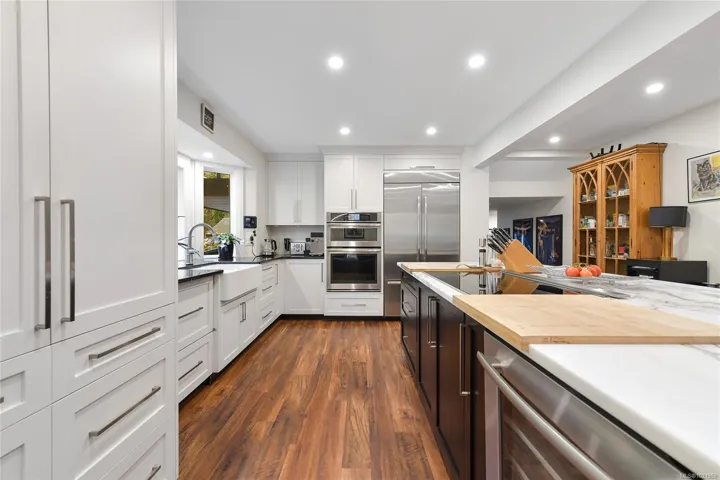 Car collector’s dream property located by Elk Lake on a 1.7 acre property in Cordova Bay. Renovated 1989 built 2500sf 3 bedroom home with open floor plan including gourmet kitchen and vaulted ceilings, family room and every modern convenience. Spacious primary suite with balcony, walk in closets (one of them is massive) and spa-like ensuite with soaker tub and oversized shower. Patio area with outdoor kitchen and hot tub and double garage for daily drivers. Fantastic detached garage complex with 4 bays (including overheight bay with car lift), workshop and loft with lounge area/gym, skylit studio and caretaker/nanny suite. Not a car collector? This could be an incredible craft, woodworking or metalworking center or storage for boats, recreational vehicles or other equipment. Courtyard area for summer gatherings plus wooded and garden areas for privacy- all just minutes to downtown Victoria, Cordova Bay Golf Course, the airport and ferries. A rare offering with many possibilities.