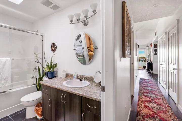 Stunning water views await you in this beautiful, turn-key 2-level ocean view home located in the heart of Central Saanich. Enjoy the spacious upper floor featuring vaulted ceilings, abundant natural light, & skylights in both full bathrooms. This level offers 2bedrooms, a full-size laundry room, & a captivating sundeck with sweeping ocean views. The lower level features a self-contained 1bedroom, 1bathroom suite with a long-term tenant currently paying $1,750/month, offering excellent income potential. Outside, the private, fully enclosed backyard provides an ideal space for relaxing or entertaining. Offering plenty of room for guests or visiting family, this well-maintained home is just steps from the ocean. Built in 2011, the residence is located within Hummingbird Village, a private, gated 45+ adult community known for its friendly neighbours and strong sense of community. Enjoy a peaceful setting while remaining conveniently close to Saanichton, Sidney, YYJ Airport, & BC Ferries.