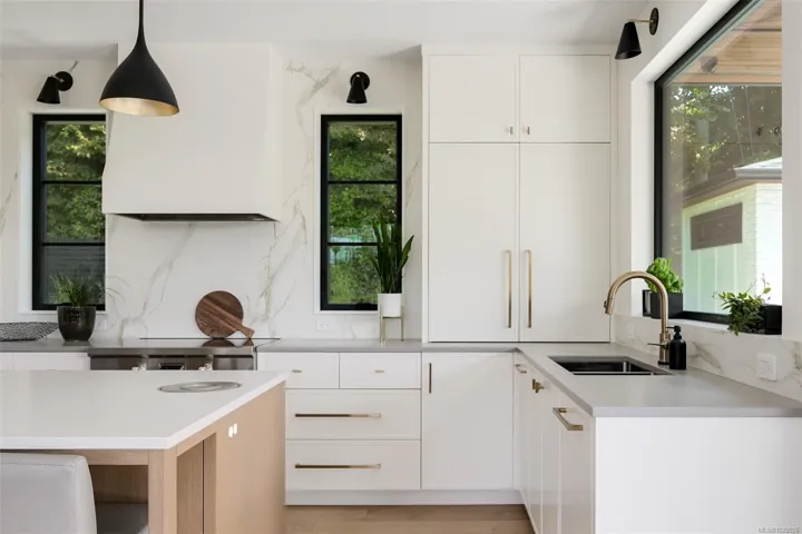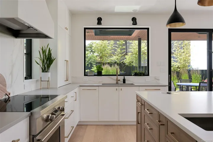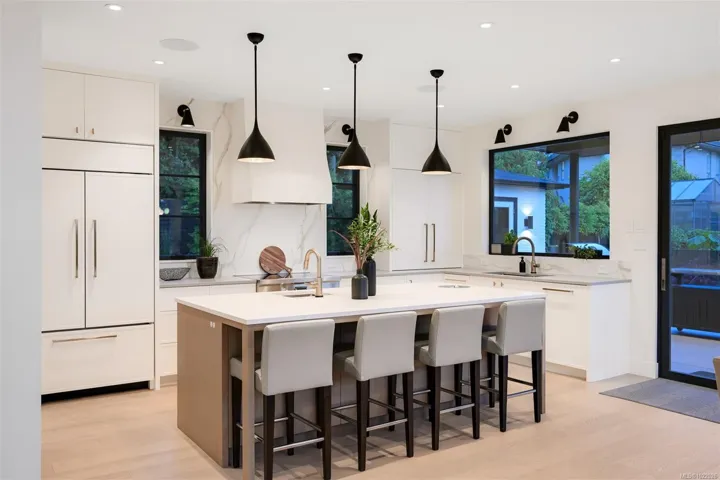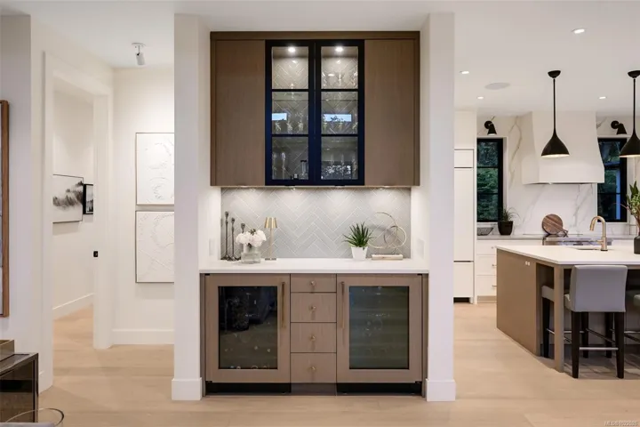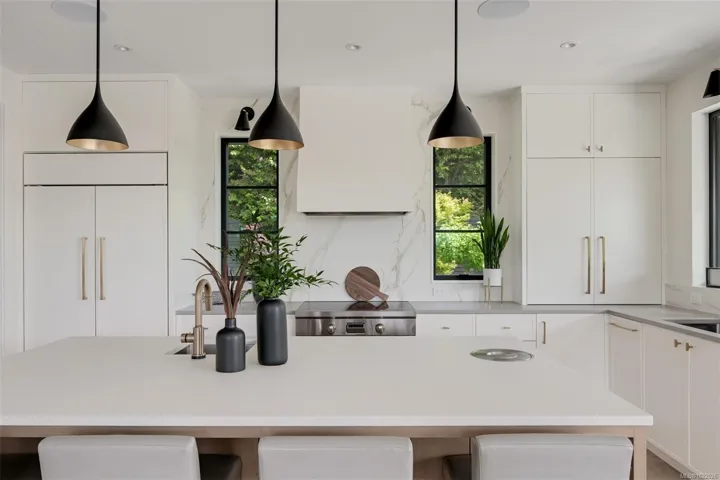 Located in the heart of historic Rockland, this 4,500 sq. ft. custom home by Coast Prestige Homes and Robert Blaney Design blends contemporary elegance with timeless craftsmanship. This 5-bedroom, 5-bathroom residence offers open concept living flooded with natural light, a dramatic gas fireplace, and a chef’s kitchen with Wolf, Sub-Zero & Miele appliances, dual dishwashers, and walk-in pantry. Seamless indoor-outdoor flow leads to a covered terrace with audio, heaters and much more. Exquisitely landscaped grounds include raised garden beds and a custom shed that mirrors the home. The luxurious primary suite includes a spa-inspired ensuite, dual closets, ocean views and private balcony. A family room, gym, mudroom, and oversized double garage complete this rare offering in one of Victoria’s most coveted neighbourhoods—ideal for elevated everyday living, sophisticated entertaining, and enjoying the best of the West Coast lifestyle.