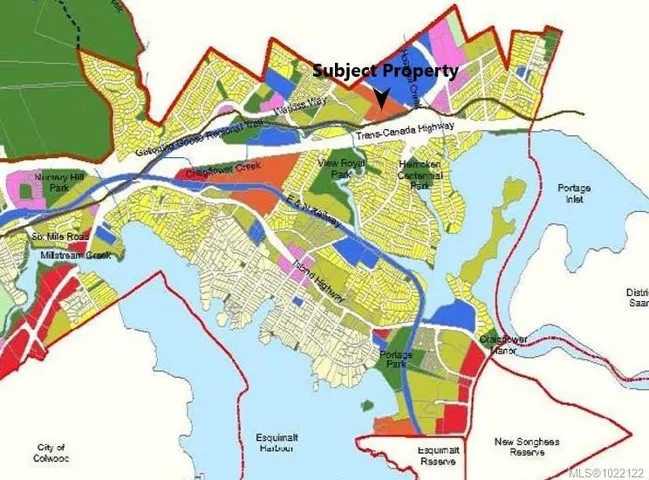 Attention Developers! We’re pleased to offer the last large development site for sale on Erskine Lane that’s perched high at the end of the road with southerly views overlooking View Royal to the Olympic Mountains. This 47,000 square foot property is designated “Intensive Mixed Use” in the View Royal Official Community Plan, which foresees commercial and residential uses in buildings up to 5 storeys with a maximum 2.5:1.0 FSR. This site enjoys the best location and outlook for exclusive ocean view apartments on every level. Municipal infrastructure upgrades are underway to service similar development projects on Erskine Lane. Two rental houses provide holding income while development plans are formulated. Don’t miss this exciting opportunity to build a true landmark building in View Royal! Please DO NOT walk the property without a confirmed appointment!