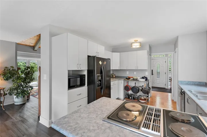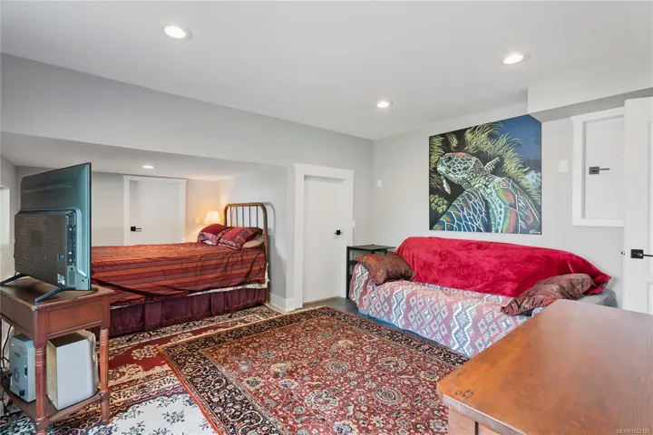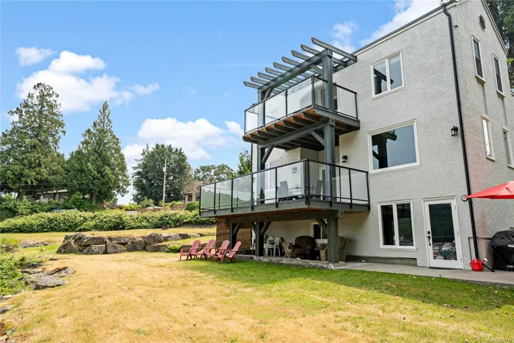 Experience true West Coast living in this stunning 2,693 sq.ft. oceanfront home on a 0.35-acre lot in beautiful Genoa Bay. Enjoy breathtaking panoramic views from nearly every room and all three decks. With 1/3 ownership of a private dock with legal foreshore tenure, this property offers moorage for up to a 35’ boat—perfect for boating enthusiasts. The main floor features vaulted ceilings, a cozy fireplace, dining area, and a kitchen with breakfast nook and deck access. Also on this level: a spacious bedroom, 2-piece bath, and laundry. Upstairs, the primary suite boasts a 5-piece ensuite and private deck access, while a second bedroom offers its own 3-piece ensuite and shared deck access. The lower level is ideal for a family room, office, or studio, and includes two finished storage rooms and backyard access. Recent updates include a metal roof, windows, doors, gutters, and paint. Just a 2-minute walk to Genoa Bay Marina, public beach, and the popular Genoa Bay Café.