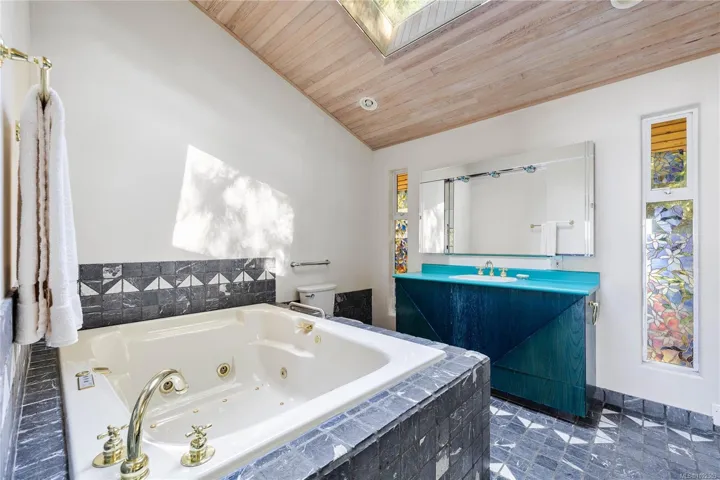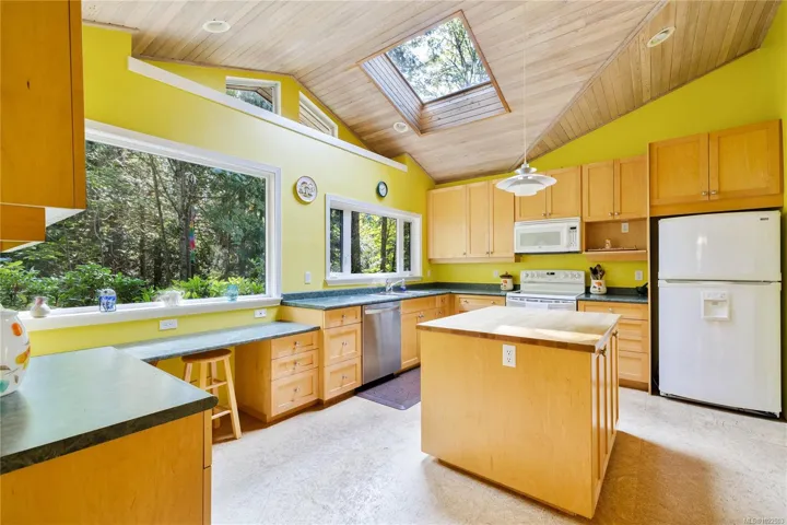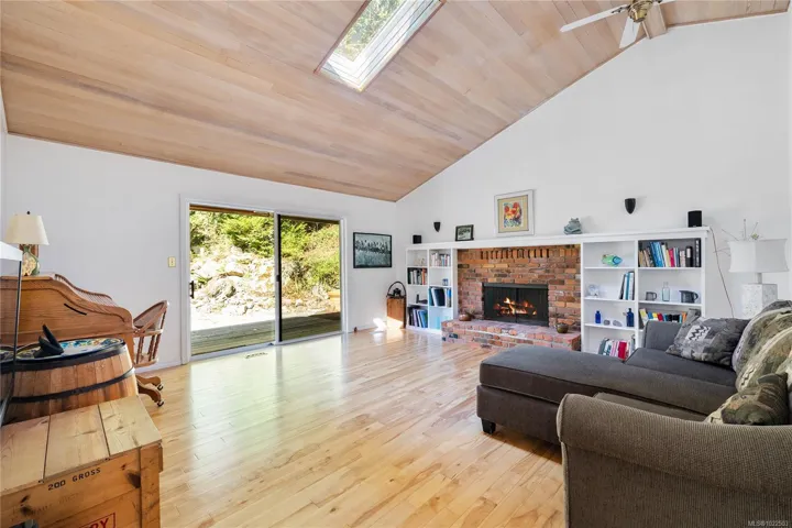 Chase an enchanted waterfall at the finest waterfront setting of 4.6 acres at the top of coveted Duck Bay in Vesuvius. A rare offering of a private, picturesque oceanfront estate with warm summer swimming, protected mooring buoy, amazing west facing sunshine, babbling brook and gifting gorgeous ocean to island views. The lovingly cared for 4,100 sq. ft home offers ample space for extended family and friends, convenient main floor living, vaulted cedar ceiling, hardwood flooring in primary rooms, in-floor heated bathrooms, and an efficient heat pump. A sweet two-bedroom cottage and a detached garage add to the features. The outdoor space around the home is beautifully landscaped with a zen flair and pretty ponds, shared with native westcoast forest and the coastal shoreline. A tranquil haven and an heirloom retreat waiting to make some special memories of a lifetime!