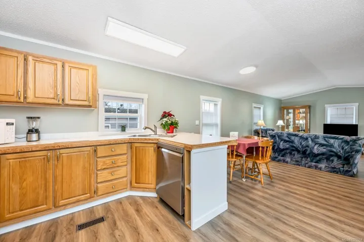 Family Park. Move right in and enjoy this fully updated, stylish, and accessible home—ready for immediate possession. Thoughtfully designed for independent living, it offers a no-step entry, widened doorways, fresh paint, new flooring, and modernized electrical throughout. The bright, open layout feels fresh and inviting, with anchored carpet in the primary for mobility aids. The brand-new 4-piece bathroom shines with updated fixtures plus a bath lift/shower chair for ease. You’ll also love the convenience of in-suite laundry, new appliances, privacy blinds, and a spacious 7′ x 36′ covered verandah—perfect for year-round enjoyment. Outdoors, the sunny, manicured lot includes a powered workshop, greenhouse, fenced garden site, and two parking spaces. Pet-friendly and practical, the location is on a direct bus route and within walking distance to shops, services and Sooke Centre. Live simply and love where you live. Bonus; only nice folks live here!