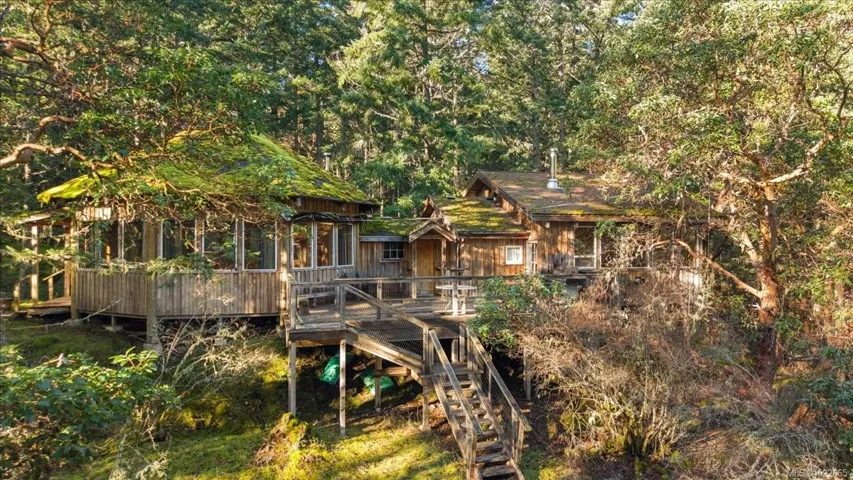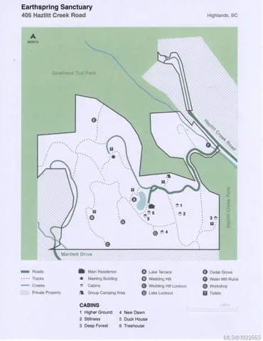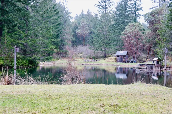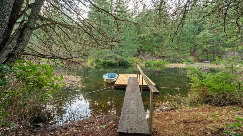 An extraordinary 77 acre private estate in The Highlands offering total privacy just 10 minutes to Langford and 30 minutes to downtown Victoria. A rare West Coast landholding capturing the essence of Southern Vancouver Island’s natural beauty. Established trails and access roads wind through towering cedar groves, seasonal creeks, and elevated hilltops with southern views to the Olympic Mountains. The main lakefront residence accommodates 10 plus guests, ideal for family gatherings or executive retreats. A short walk uphill leads to a large accessory building suited for studio, wellness, or event use with a serving kitchen and outdoor dining space for 30 plus guests. The property also includes 3 standalone cabins and 2 camping areas. Bordered by parkland on three sides, this private sanctuary offers flexibility to build a legacy residence, host curated retreats, or explore ecological stewardship opportunities.
