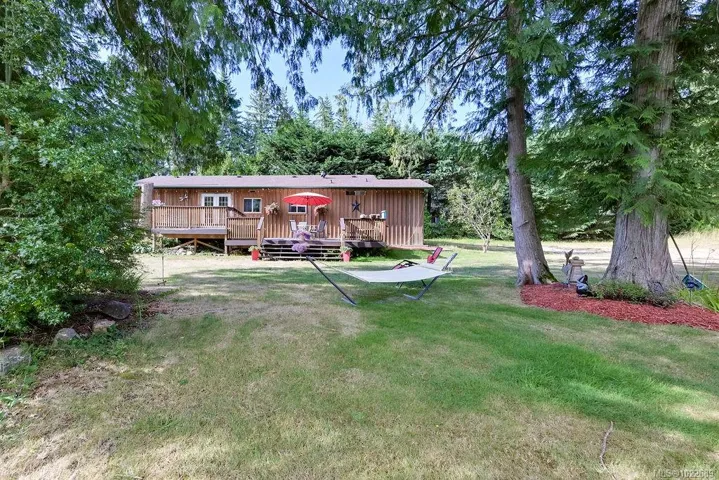 Peaceful 1.15-Acres in Cobble Hill. Nestled in a quiet, park-like landscape, this level property offers a mix of comfort, opportunity, and natural beauty. The updated 1,260 sq. ft. deregistered mobile home with additions features 3 bedrooms and an inviting, open layout. Relax on the expansive 12’ x 36’ deck, explore possibilities in the 12’ x 24’ studio/tiny home, or enjoy the versatility of the 16’ x 24’ shop/games room. Wander through gardens and enjoy evenings by the campfire under the stars. Plenty of parking for RVs and recreational vehicles, while schools, golf, shopping, dining, and transit are all close by. Water and sewer connections at the rear provide exciting potential for future rental income or an additional family residence. Whether you choose to build your dream home, enhance the existing setup, or simply enjoy its current charm, this property presents a rare blend of serenity and future promise, just 15 minutes to Duncan, 30 minutes to Victoria, and 40 to Nanaimo.