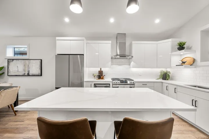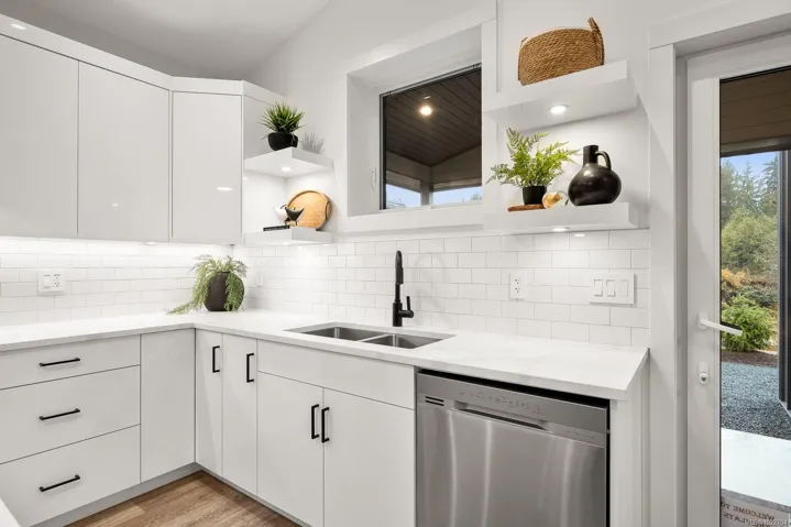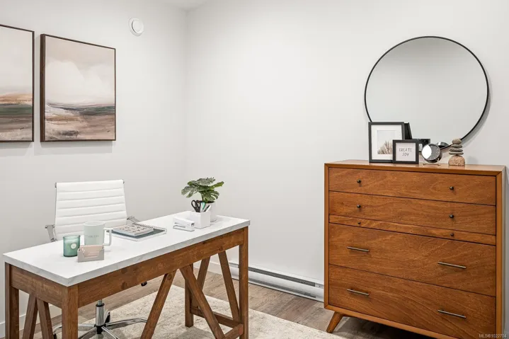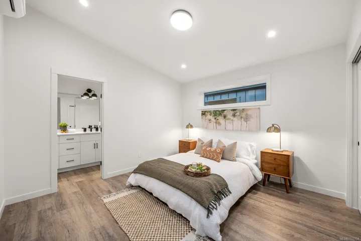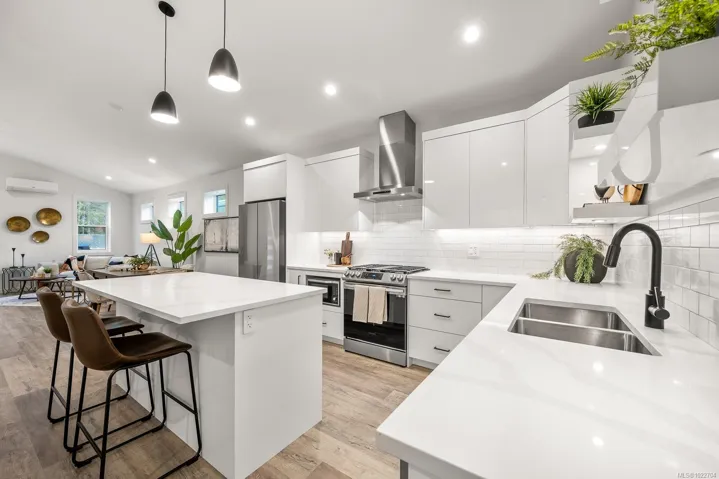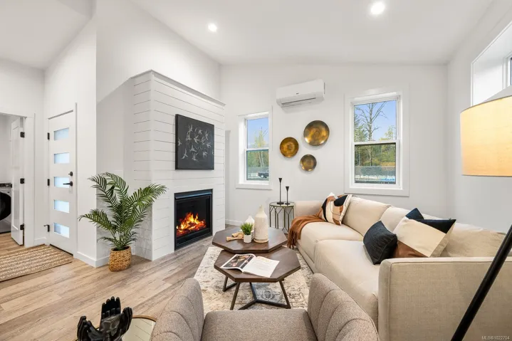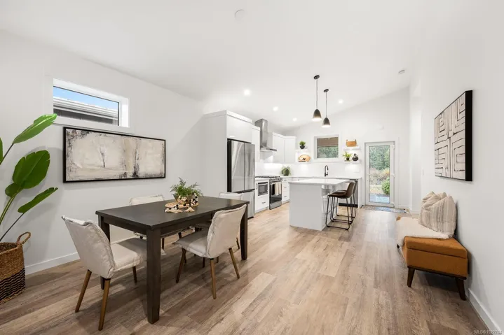 New and improved, The Northern Flicker is a stunning 2 bed 2 bath home offering incredible value. Spanning over 1,200 sq ft, you’ll be impressed with the spacious layout, contemporary design and high end finishings. Turn-key ready with full appliance package, quartz countertops, heat pump, modern kitchen cabinets, large island and well appointed laundry room with storage, sink and quartz countertops. The open concept kitchen-dining-living area is light and airy with soaring 12 ft vaulted ceilings and 7 windows for plenty of natural light. The show stopper Is the 14′ x 10′ covered rear patio, perfect for relaxing with family and entertaining friends. With a metal frame, metal siding and metal roof, maintenance is minimal. Notice the thick 12′ walls, high energy performance and low running costs. GST applies. The Flats of Cumberland is a brand new community of 56 beautiful homes