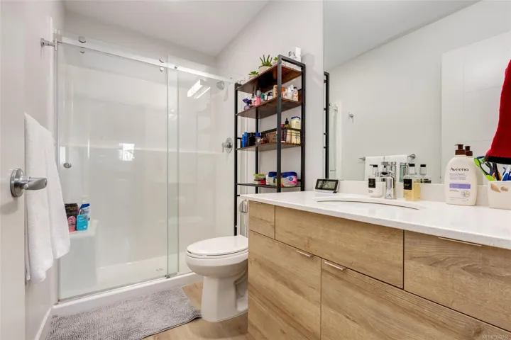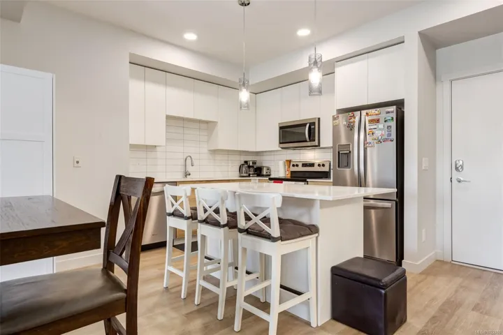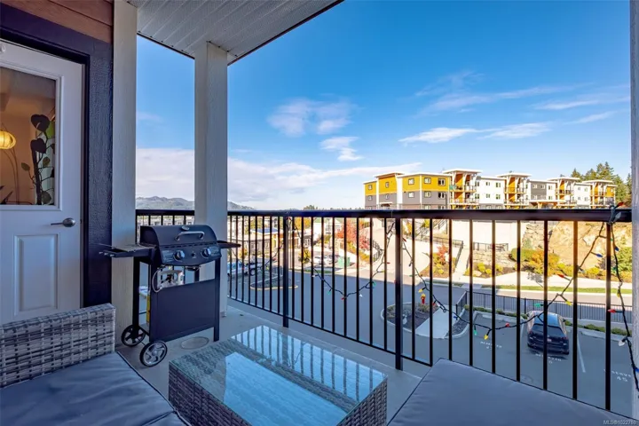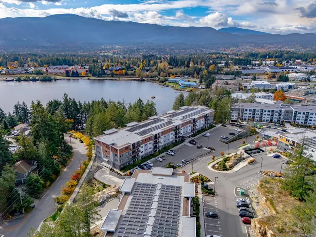 Welcome to this stunning home in Lakeview Terrace! This Built Green Platinum certified 2-bedroom, 2-bathroom residence offers a fantastic vantage point with sweeping mountain views over North Nanaimo. Completed in 2022, this modern home prioritizes sustainability with roof-installed solar panels, and a heat recovery ventilation system. The bright interior boasts a contemporary design featuring up-to-ceiling cabinetry, quartz countertops, and modern fixtures. Maximizing privacy, the two spacious bedrooms are thoughtfully situated on opposite sides of the unit. You’ll have the convenience of one underground parking stall with secure bike storage. Walkability to Long Lake and North Town Centre for all your shopping and dining needs. Residents benefit from premium complex amenities, including a stylish clubhouse lounge, a fully equipped gym, and a yoga studio. Perfect for both families and investors. (Measurements and data approximate; verify if important.)