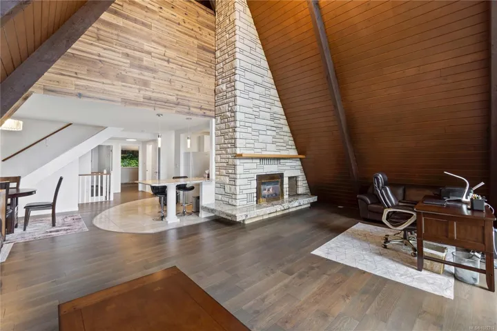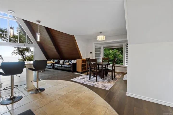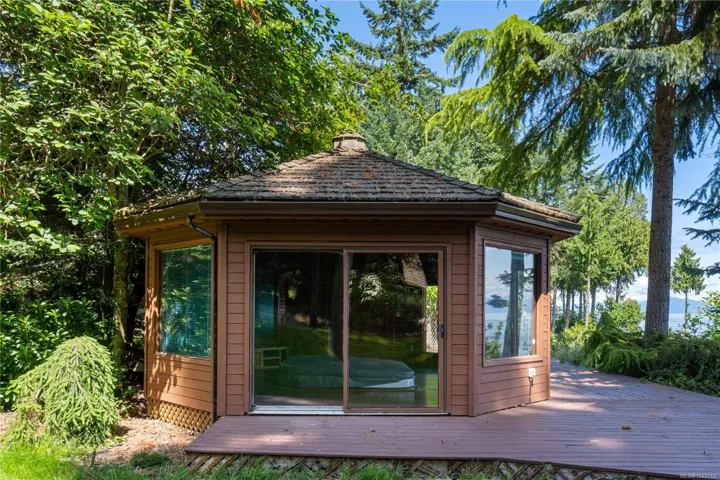 Rare waterfront home nestled on a 1.58-acre gated lot in one of North Nanaimo’s most sought-after neighborhoods,offering stunning high-bank ocean views, this private, park-like setting combines the serenity of nature with the convenience of city living, just minutes from top schools, shopping, and amenities. This beautifully updated chalet-style home offers breathtaking views of the ocean & mountains from all three levels. The main level opens onto a large deck, while the lower level extends to a spacious covered patio—perfect for entertaining or relaxing year-round. New fashion kitchen, modern lighting fixtures, and a high-efficiency heat pump for year-round comfort. A custom-built oceanview gazebo takes luxury to the next level with a deluxe hot tub, sauna & generous seating area—an ideal place to unwind & take in the views. Several outbuildings provide ample storage & covered parking. This unique property offers the ultimate blend of natural beauty, privacy & upscale comfort.