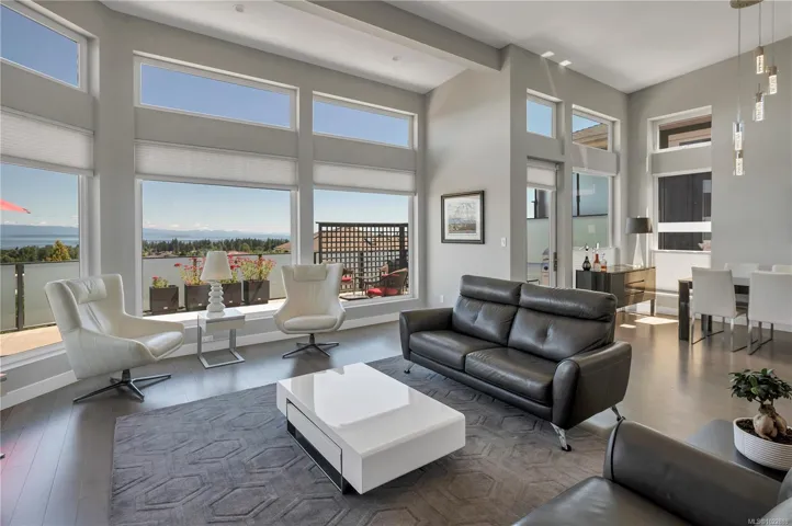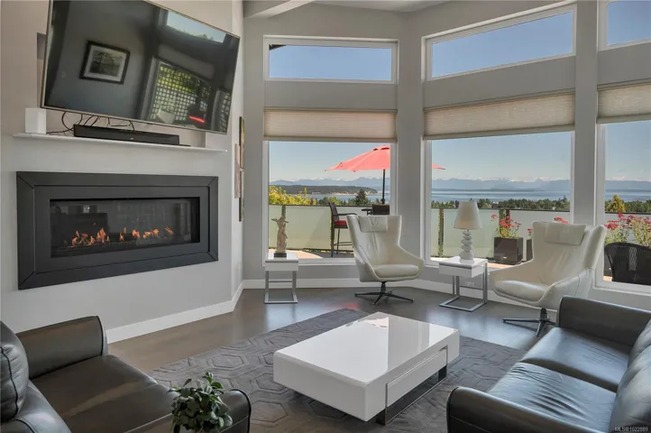 Prepare to be captivated by this exceptional executive home. A serene Zen garden leads to the covered entry, opening to a light-filled layout with floor-to-ceiling windows framing panoramic ocean views. Ideal for entertaining, the home features a stunning kitchen with an expansive island, grand piano lounge, vaulted living room with oversized gas fireplace, and a generous ocean view deck. The main floor primary suite offers deck access, a walk-in closet, spa like shower, and a soaker tub. Downstairs offers 9’ ceilings, a cozy library, sprawling rec room, 2 bedrooms, and roughed-in plumbing for a bar or guest suite and walks out to an expansive patio. A framed and wired elevator shaft adds future flexibility. Built with ICF walls and in-floor radiant heat, this home offers timeless design, efficiency, and enduring quality.
