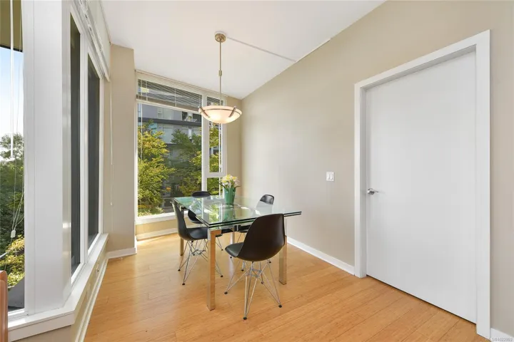 Live in Balance…at Dockside Green. A spacious SE facing 2 bed/2 full bath 1130 Sq.Ft. condo that has heaps of natural light & large outdoor deck. Located along the Upper Harbour just minutes to downtown Victoria, Dockside Green is an urban wellness neighbourhood built for health & happiness, recreation & sustainability. High quality LEED Platinum steel and concrete construction for peace and quiet and sustainability. Features include a fresh air recovery system, quality stainless appliances, full height windows, granite counters, luxurious bathrooms, gorgeous kitchen, bamboo flooring, 9 ft ceilings, large deck w/BBQ hookup, in suite laundry, storage locker, kayak storage, bicycle storage and 2 parking spots, 1 for a car and a smaller space, suitable for motorcycle. Endless lifestyle options and all amenities walking distance away, coffee shops, shopping, galloping goose trail. Move in ready. Quick possession is possible.