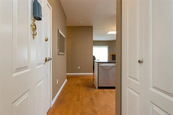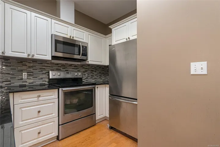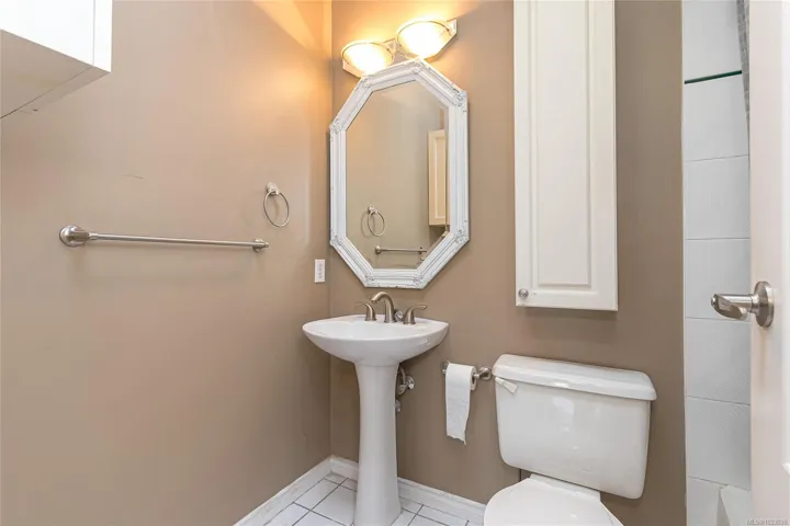 This spacious two-bedroom, two-bathroom condo is located in the well-run “Sterling Court.” It’s on the top floor, featuring nine-foot ceilings, two skylights, and a gas fireplace. The master bedroom comfortably accommodates a king-sized bed and additional furniture. The second bedroom is also quite spacious. The laundry room includes shelving space. There are two parking spaces and a storage locker. Plus, there’s underground secure parking (spaces 25 and 26) conveniently located on a bus route to UVIC and Camosun College. Hillside Mall is just a short walk away, and Victoria downtown and the shopping mall are a five-minute drive away.